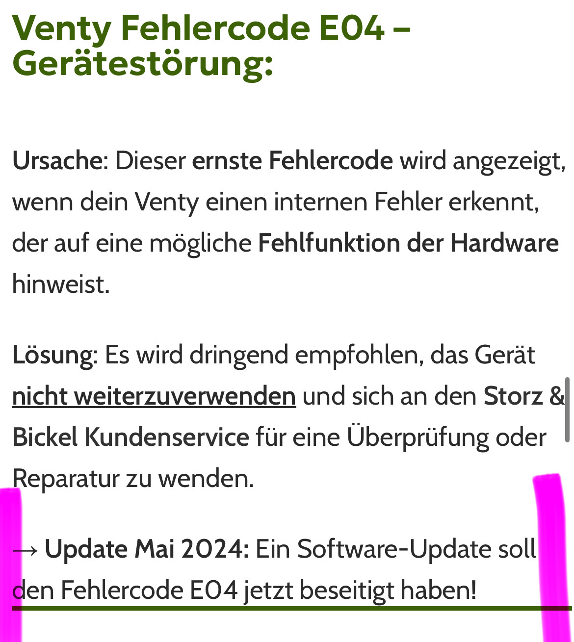 Nach knapp 3 Monaten in meinem Besitz zeigte mein Venty den gefürchteten E04 Fehler an - sprich, es tat sich einfach nichts mehr.