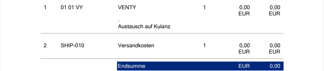 Simultan wurde eine neue Rechnung für das neue Ausrauschgerät ausgestellt und mit dieser Formulierung
