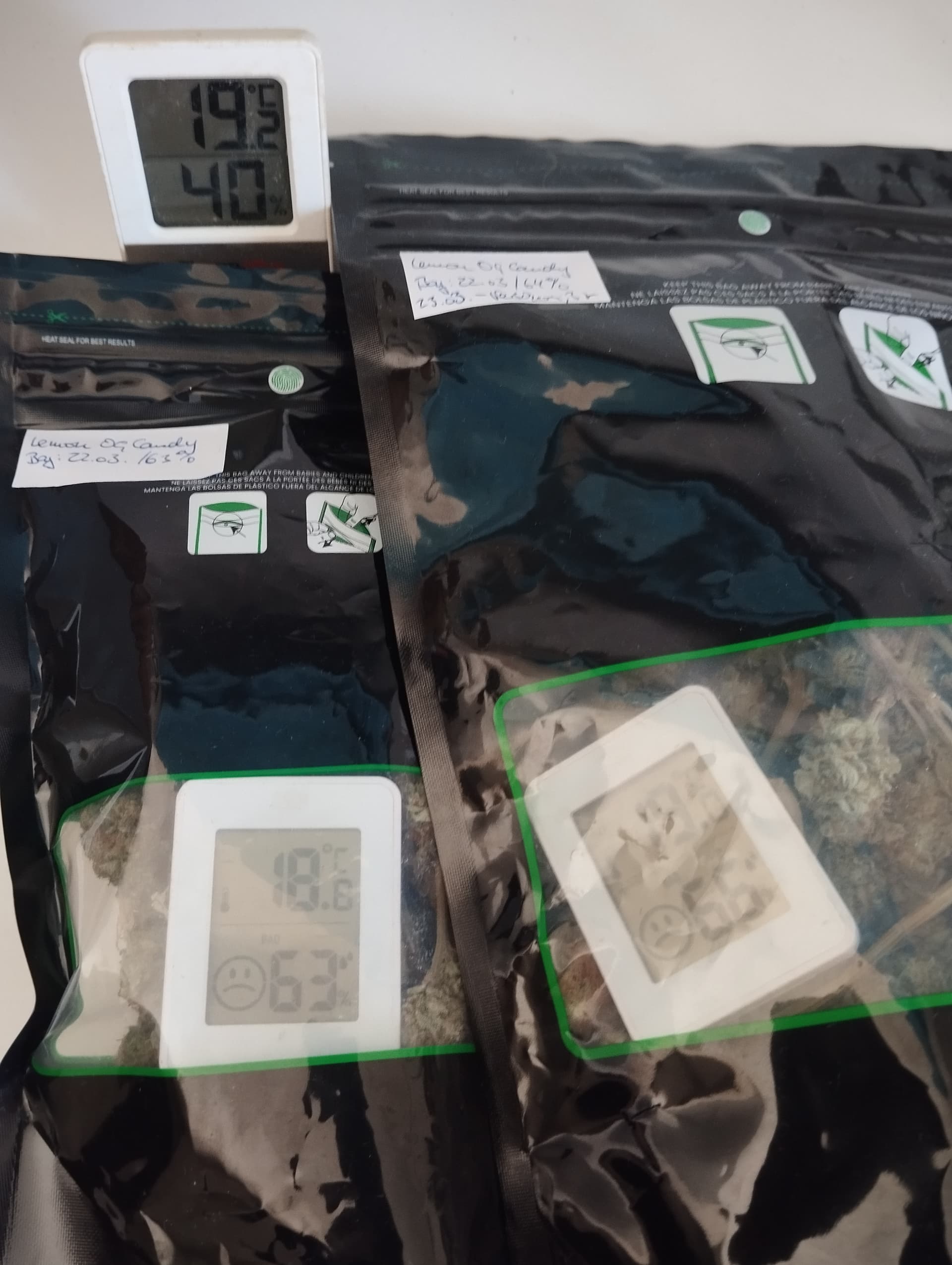 Also ich habe das so verstanden, dass die Bags nur Feuchtigkeit nach außen durchlassen durch diese spezielle Membran, bis die Buds dann bei 58 bis 62 % RLF im Beutel angekommen sind.
