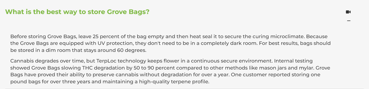 „Grove Bags are designed specifically for curing and storing cannabis.“