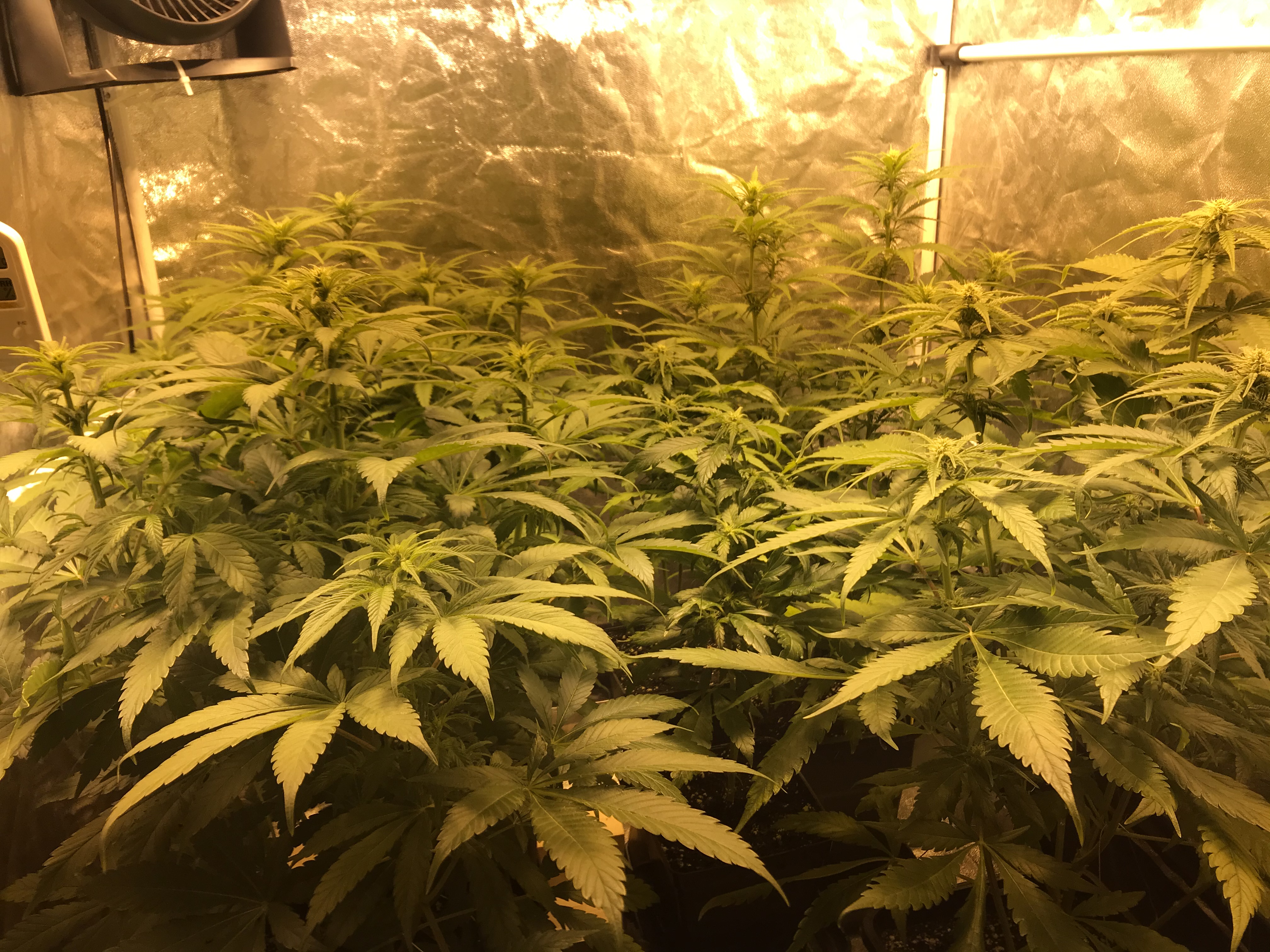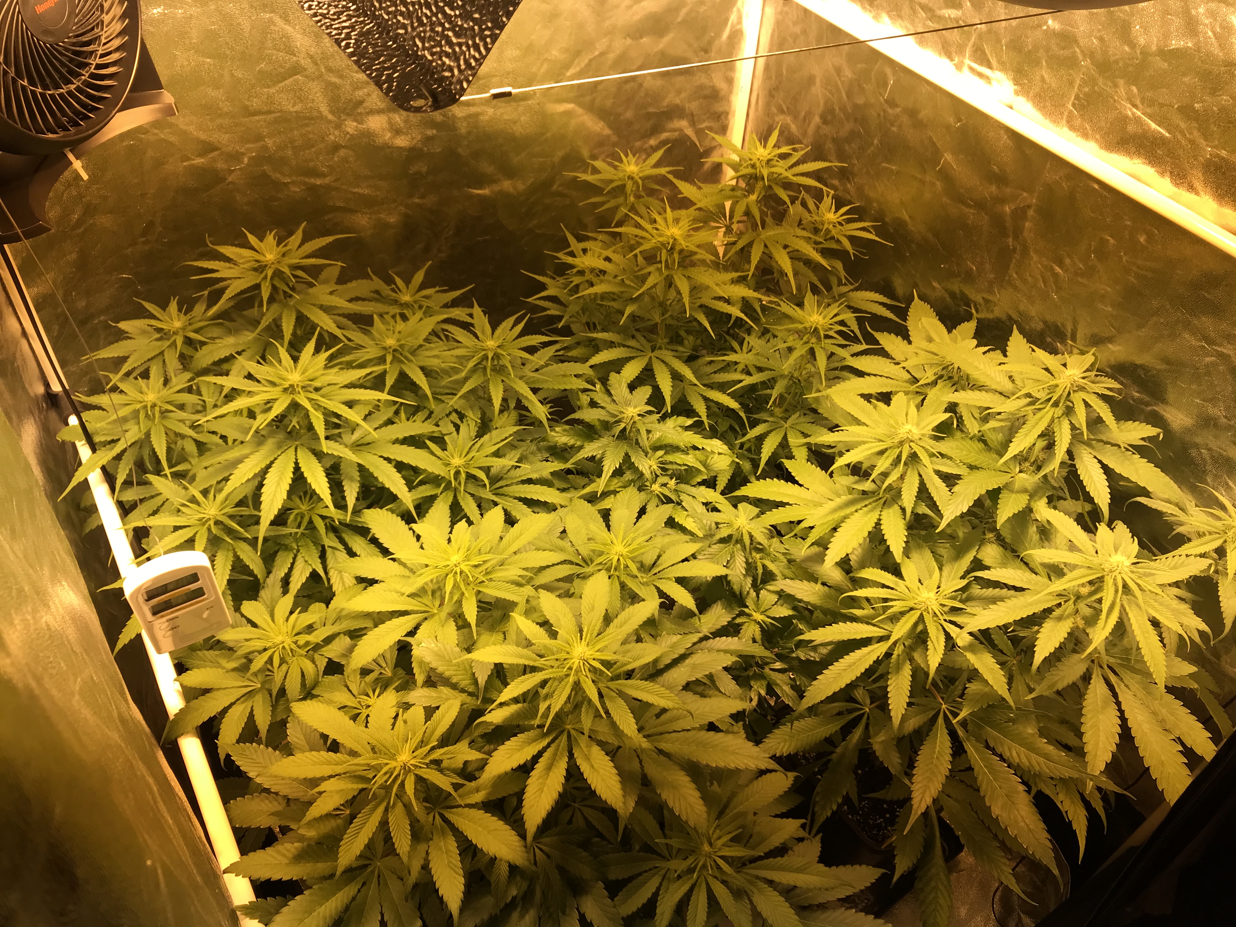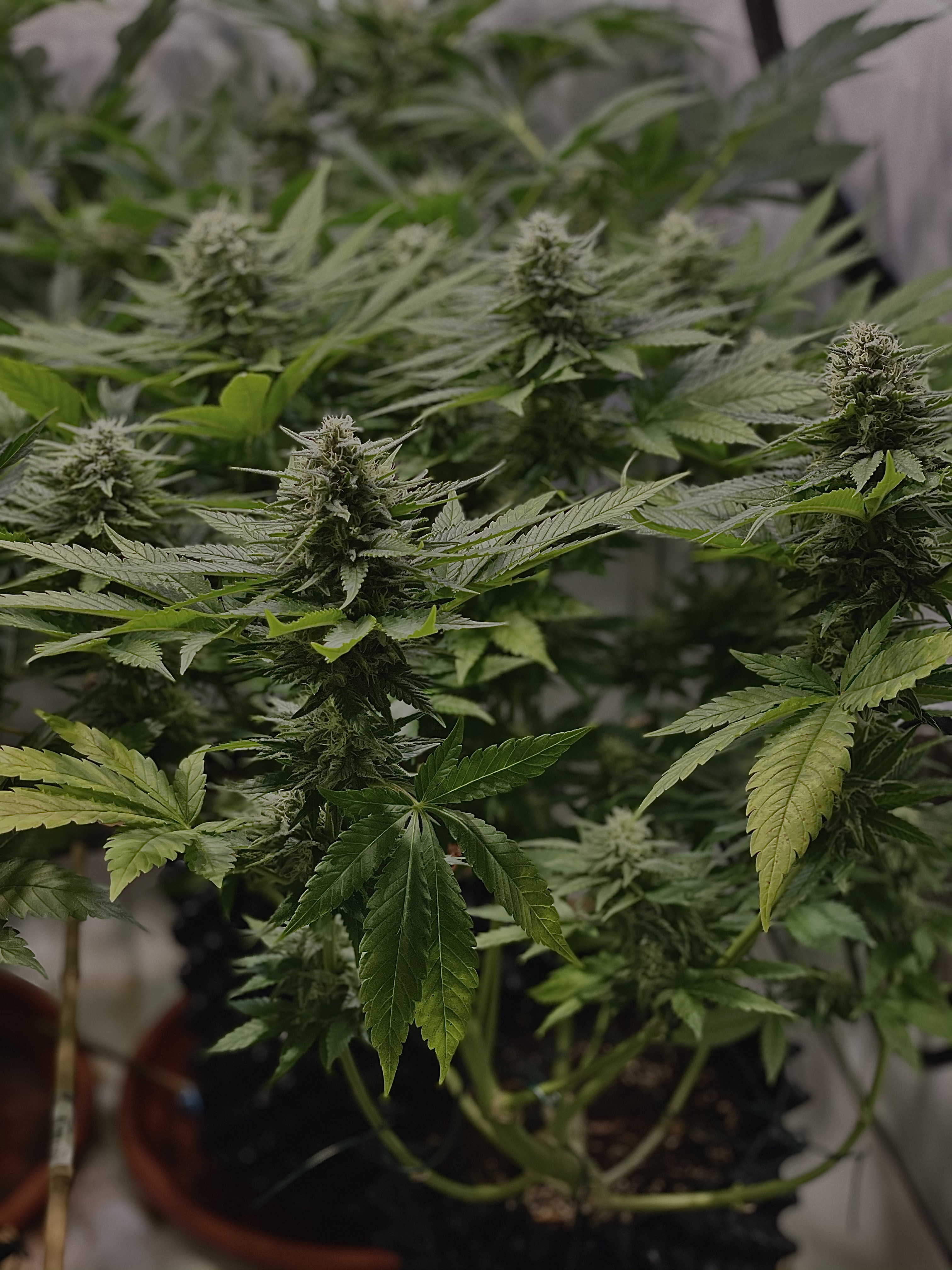 Edit: die Pflanze wo der Hund unter huckt und auf dem bild wo mein Schatten zu sehen ist, war eine meiner Lieblinge. Leider hab ich mir den Fuß gebrochen und konnte eine kurze Zeit schlecht gießen mit 20l und Krücken. Die Pflanze hatte ich recht früh getopt, sodass sie 4 fette Seitentriebe bildete die sich in Sachen höhenzuwachs nichts schenkten.