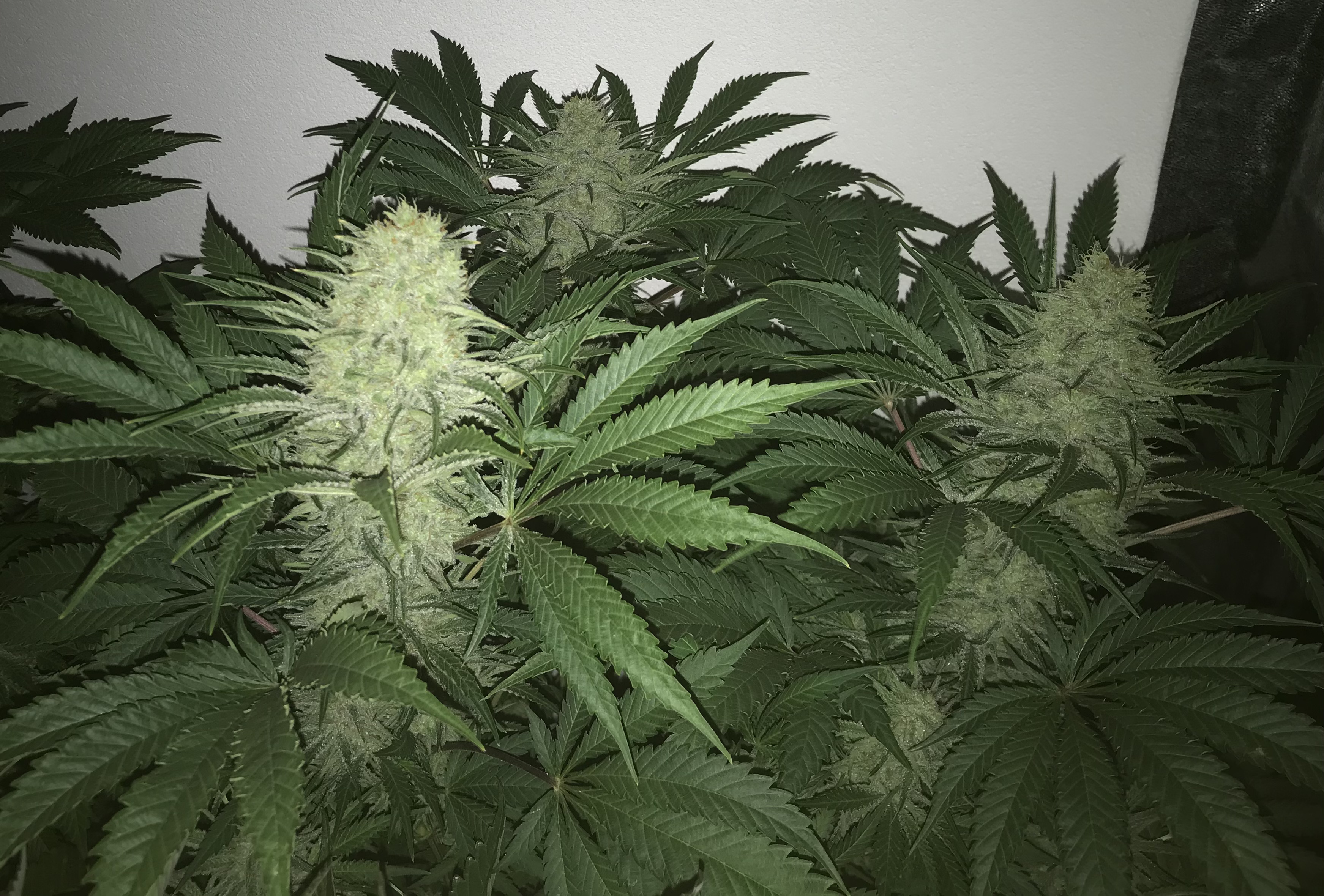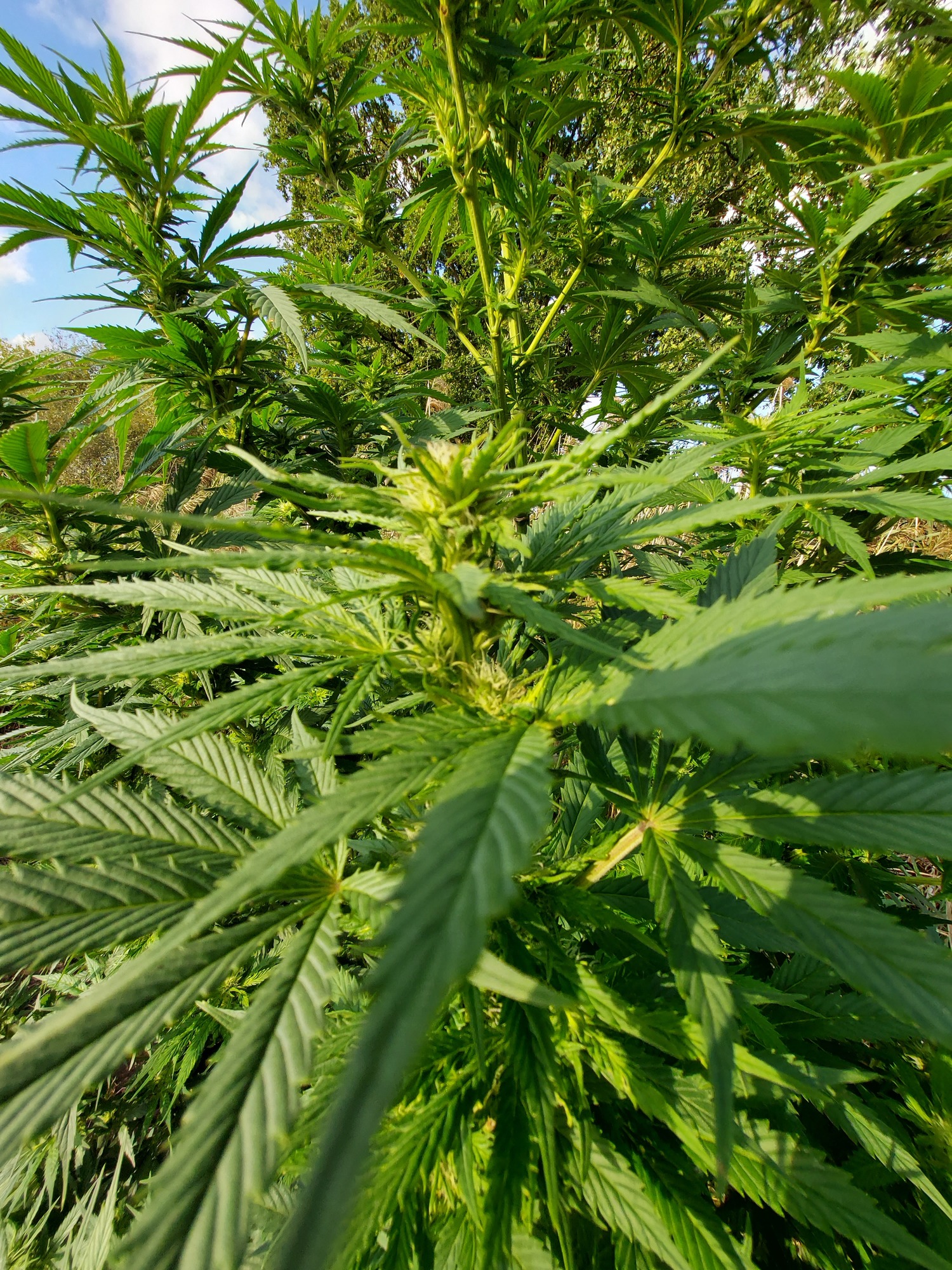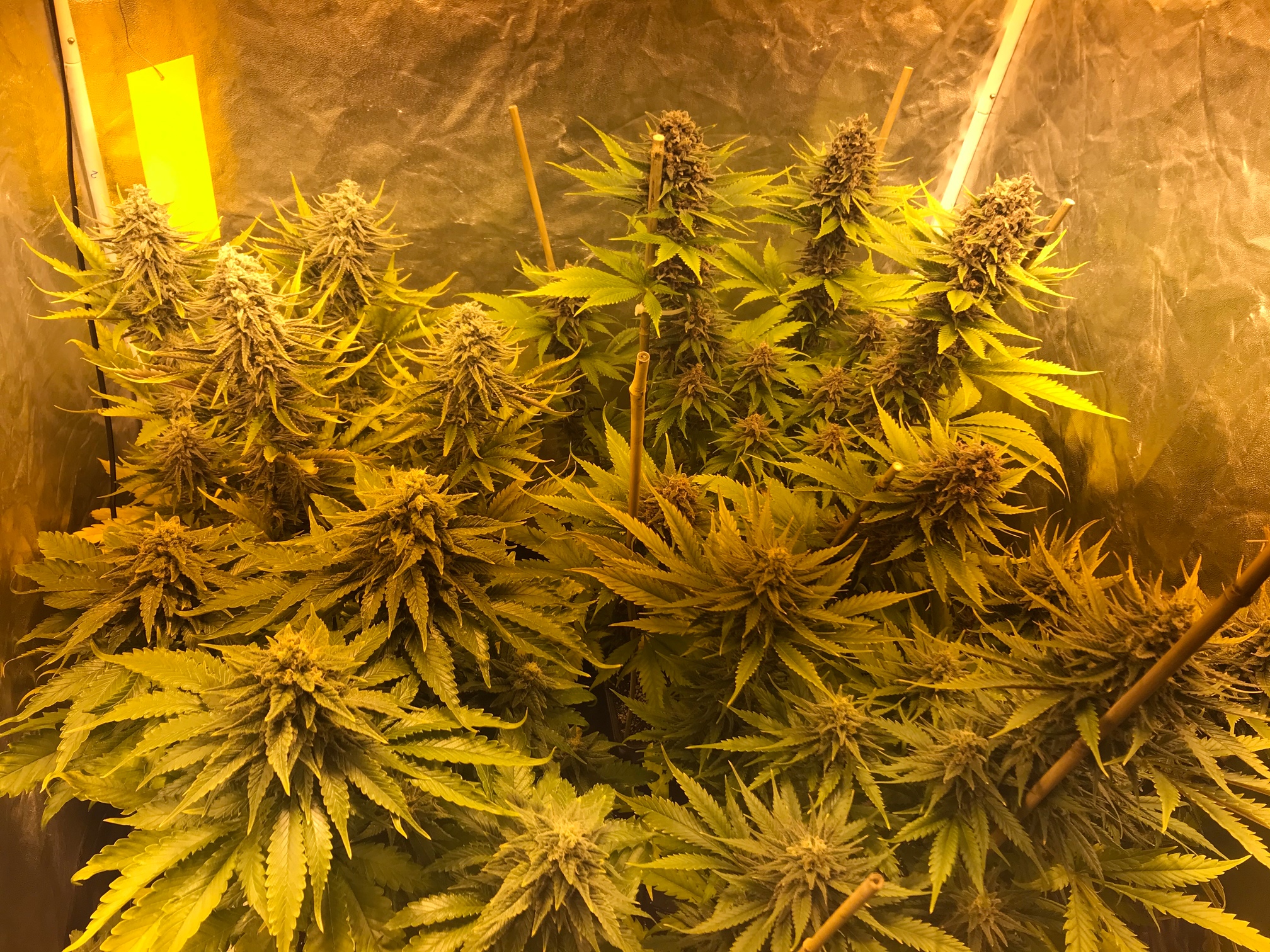 Edit: die Pflanze wo der Hund unter huckt und auf dem bild wo mein Schatten zu sehen ist, war eine meiner Lieblinge. Leider hab ich mir den Fuß gebrochen und konnte eine kurze Zeit schlecht gießen mit 20l und Krücken. Die Pflanze hatte ich recht früh getopt, sodass sie 4 fette Seitentriebe bildete die sich in Sachen höhenzuwachs nichts schenkten.