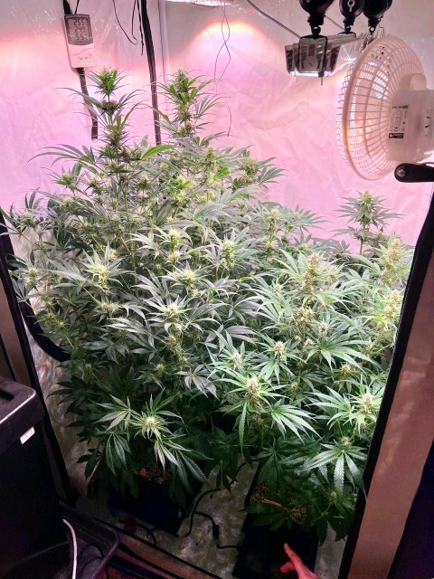 Ich behandele diesen Grow sehr Stiefväterlich. Der PH Wert wird auf 5,5 eingestellt und interessiert mich dann nicht weiter für ne Woche. Kein Lollipopping oder anderes Training. In diesem Tent gilt survival of the fittest. Im hinteren Teil stehen auch noch zwei Pflanzen eine davon sieht man schon gar nicht mehr. Die kleinen S2W Sanlightkraftwerke leisten ganze Arbeit.