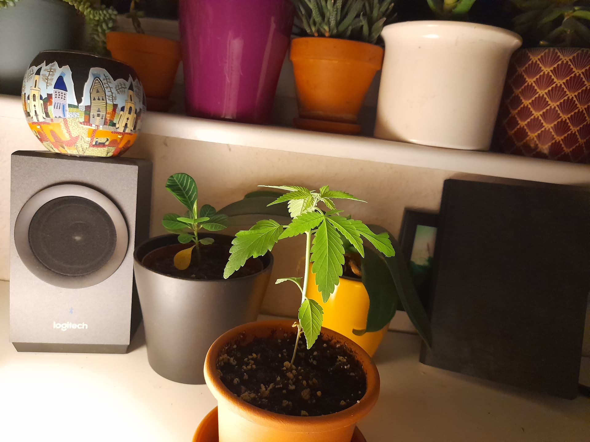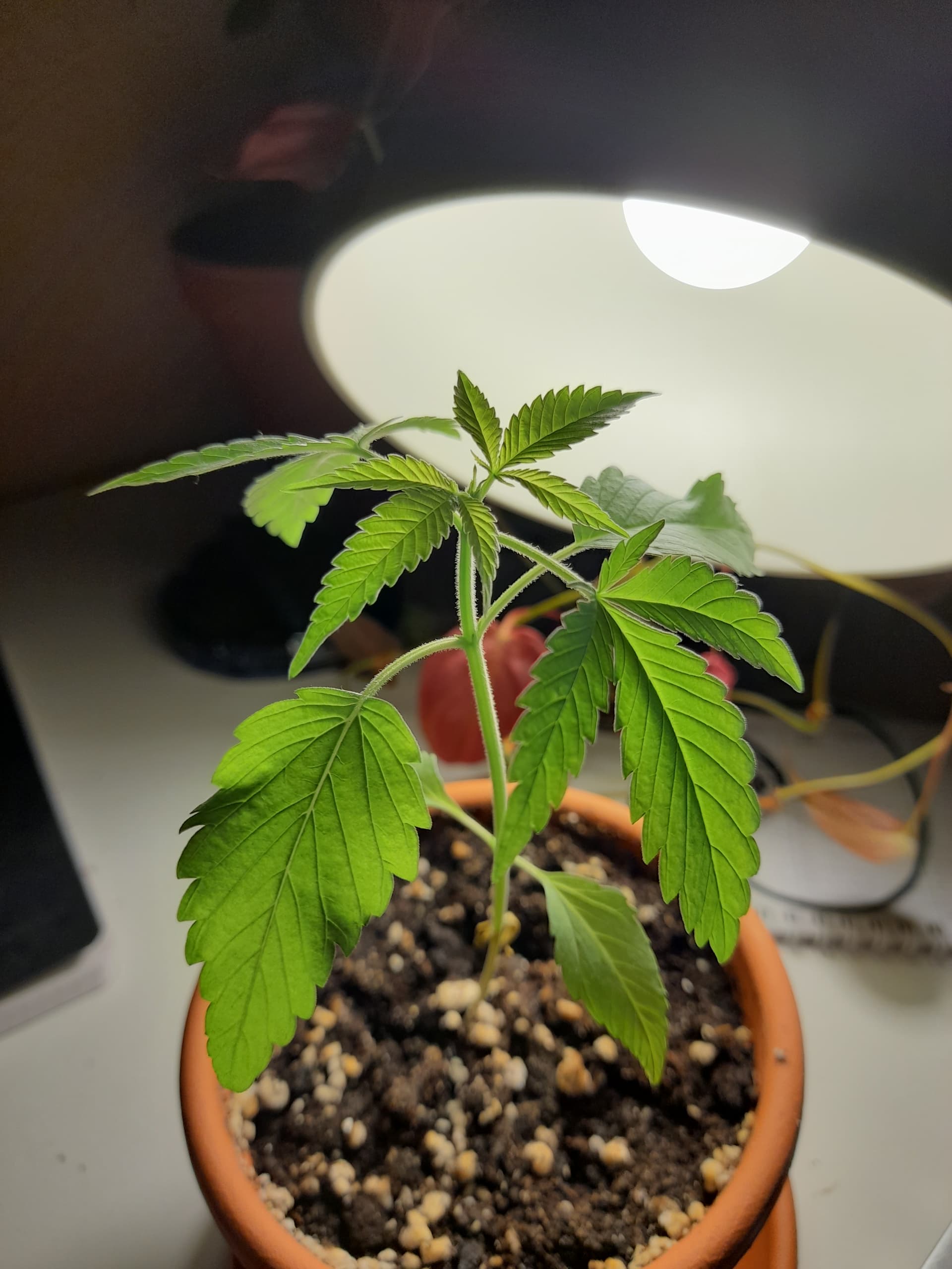 Die Lampe habe ich nur fürs Bild so ausgerichtet, sonst bekommt sie nur passives Licht ab. Habe überlegt, sie demnächst mal in einen schöneren Topf umzupflanzen und bei der Gelegenheit, gleich die Wurzeln zu beschneiden. Ähnlich wie bei nem Bonsai, habe irgendwo mal gelesen, dass Samenbanken so teilweise Mutterpflanzen, über mehrere Jahre (?!) relativ klein und gesund halten