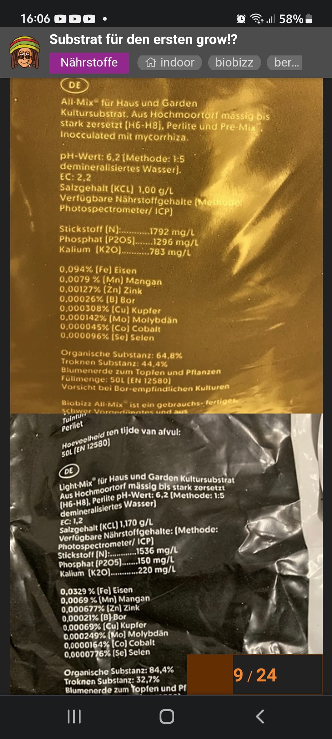 Die Erde hat echt super Inhaltsstoffwerte… siehe die Fotos zum Vergleich zu Biobizz…
