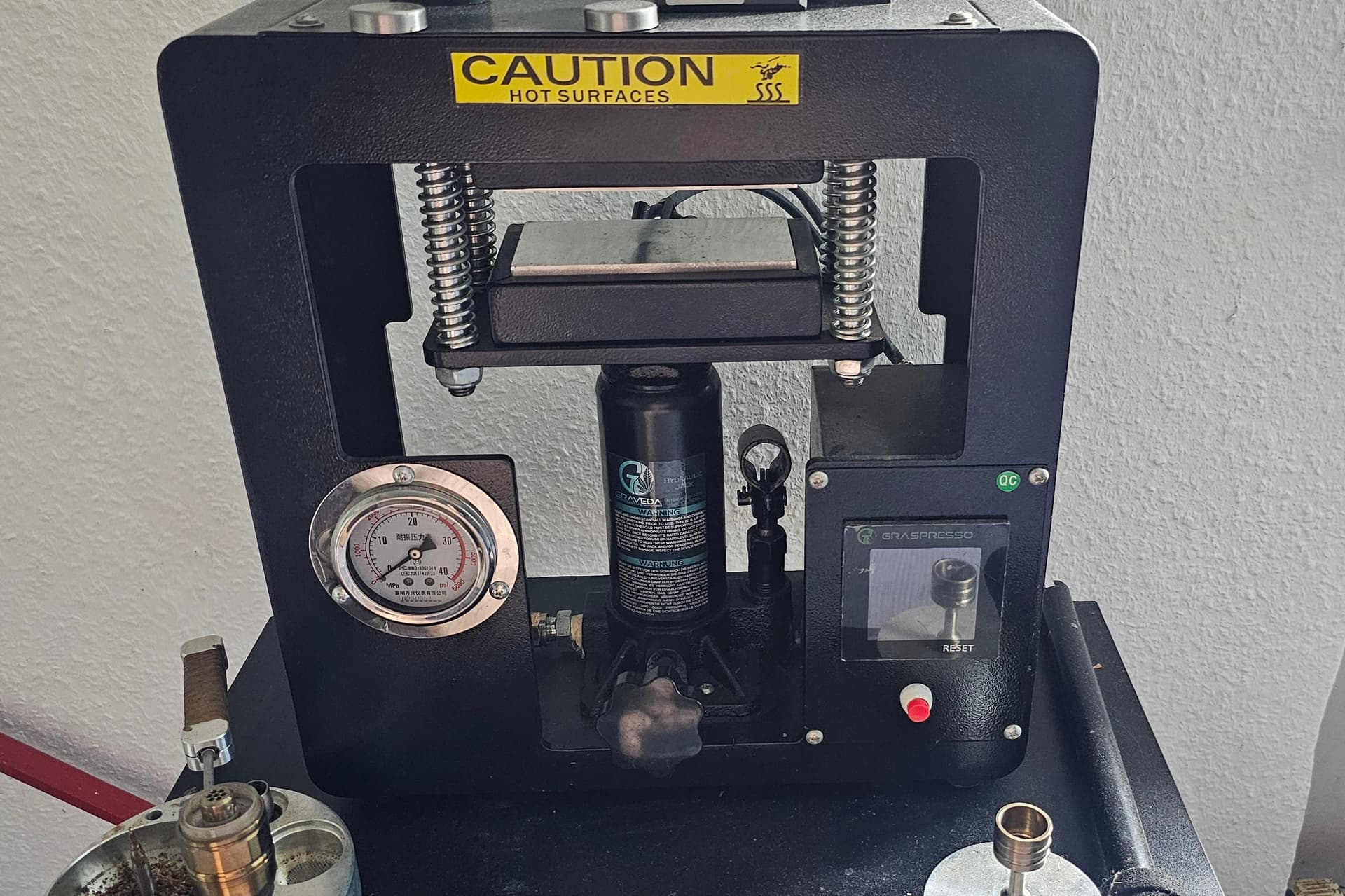 Ich schließe mich @BingoBill an und befehle ähhhh empfehle dir die Presse zu kaufen- Druckanzeige, Gold wert. Ich hab die 10t Presse, die macht solide gutes Rosin doch mit Druckanzeige ist das ganze nochmal präziser. Besonders wenn du mal mit Druck, Temp. und Zeit gezielt pressen willst.