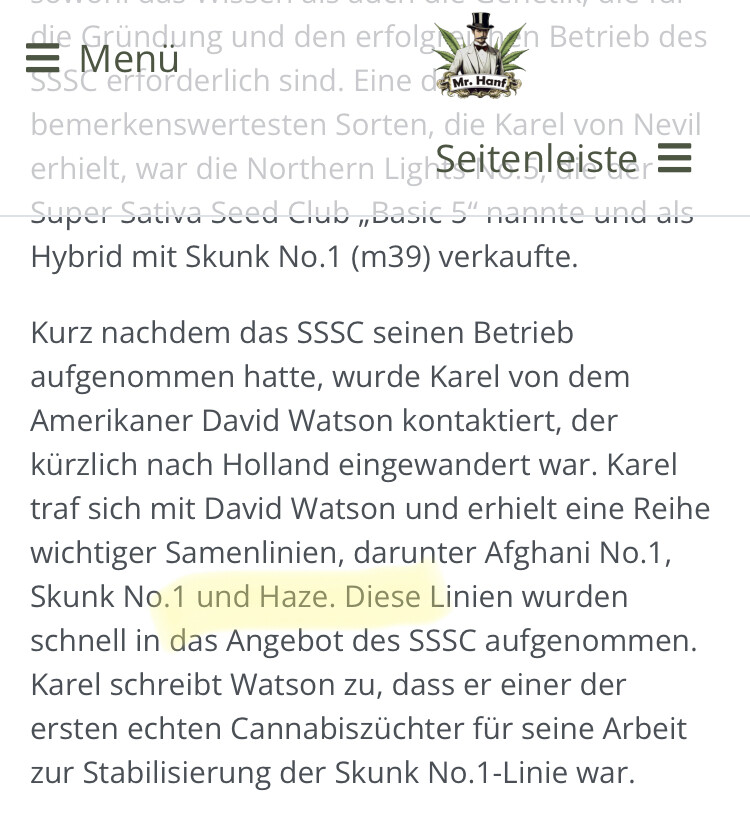 Wo kann ich dies nachlesen? Aus der Historie bei SSSC lese ich es nicht heraus und von anderen Quellen bekam ich ebenfalls den Eindruck, dass The Skunkman sie nach Europa (bzw. Holland) gebracht hatte und dann an jemanden hier übergaben.