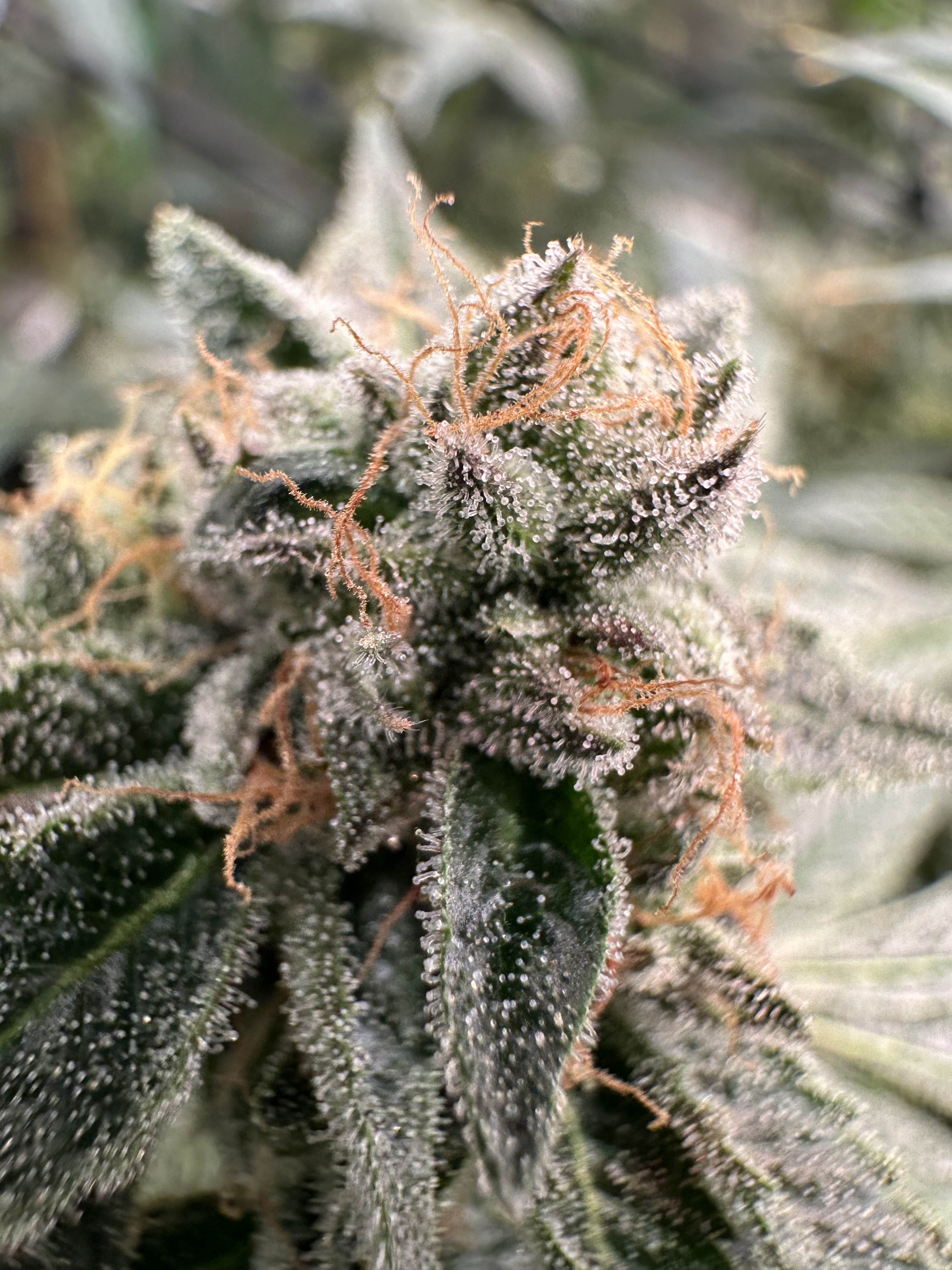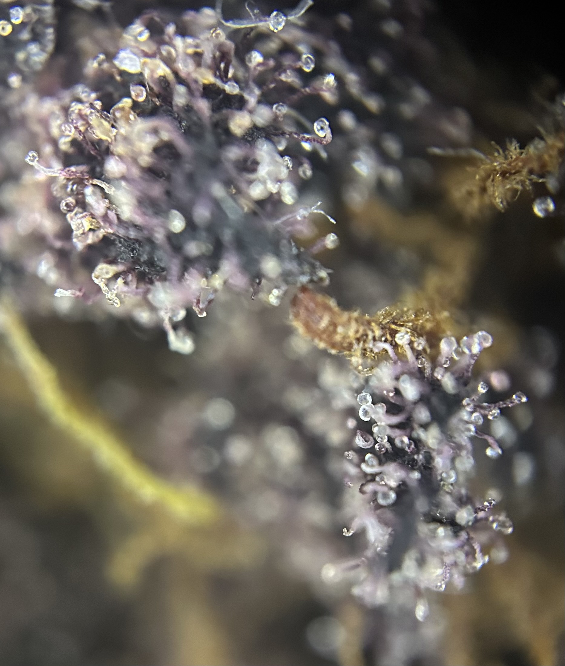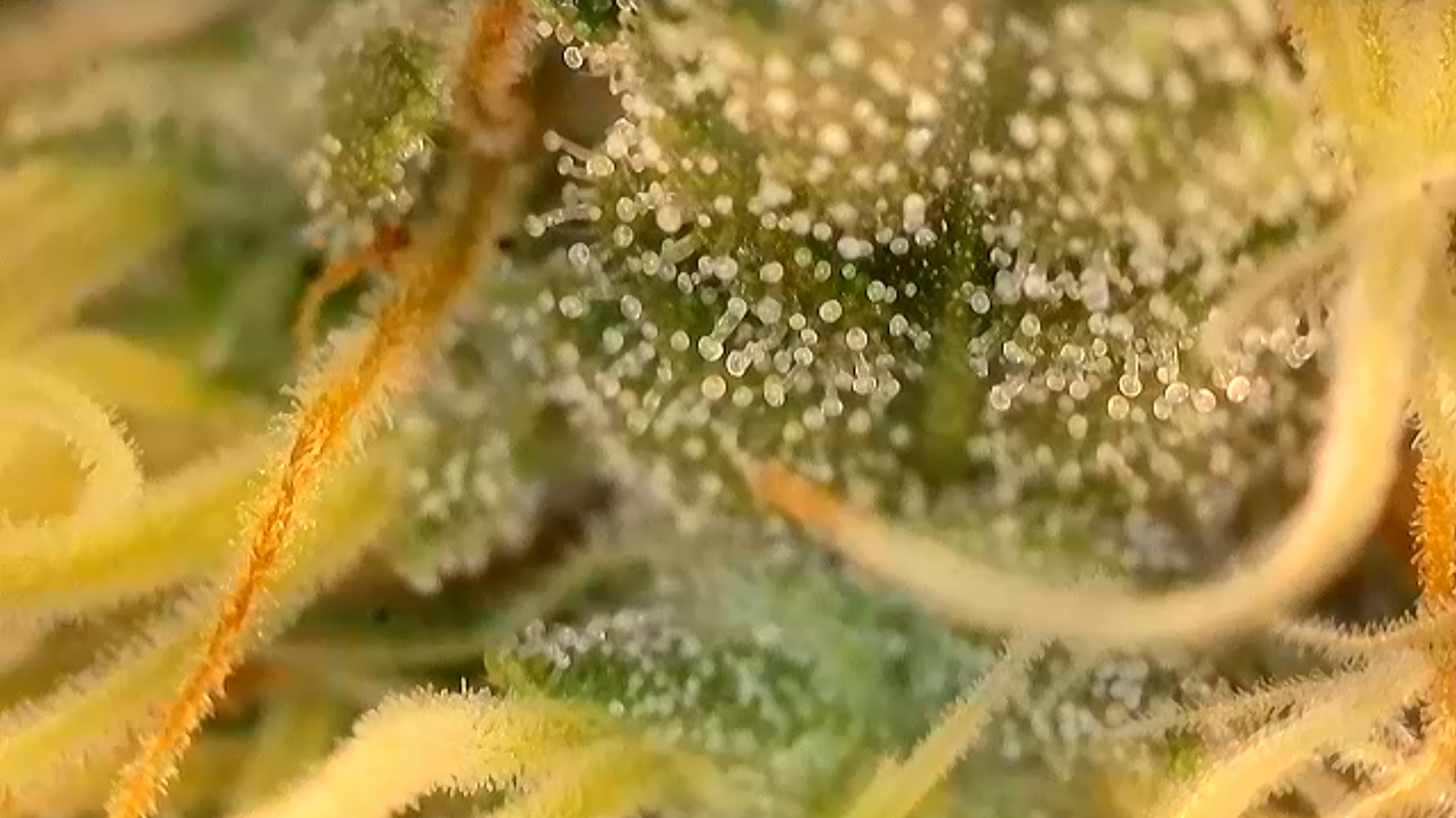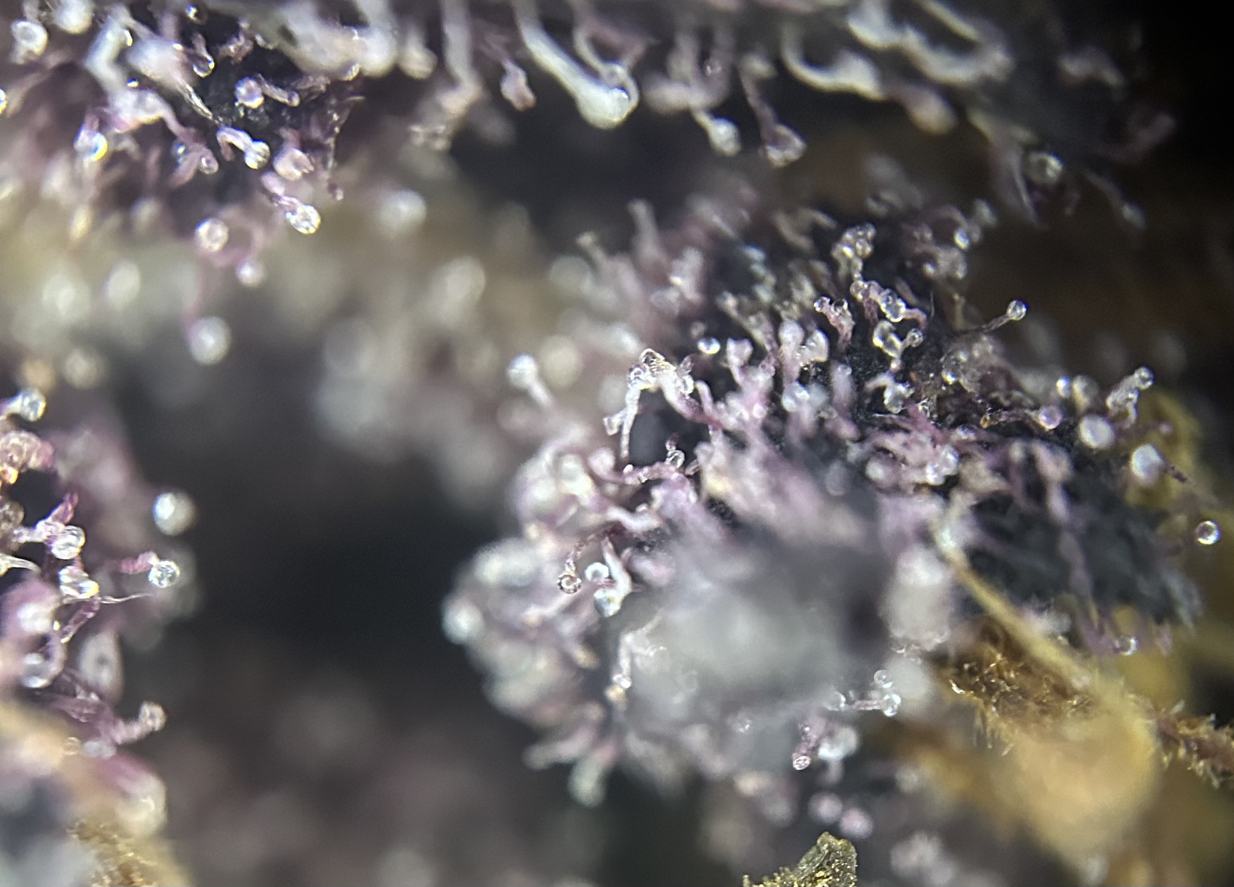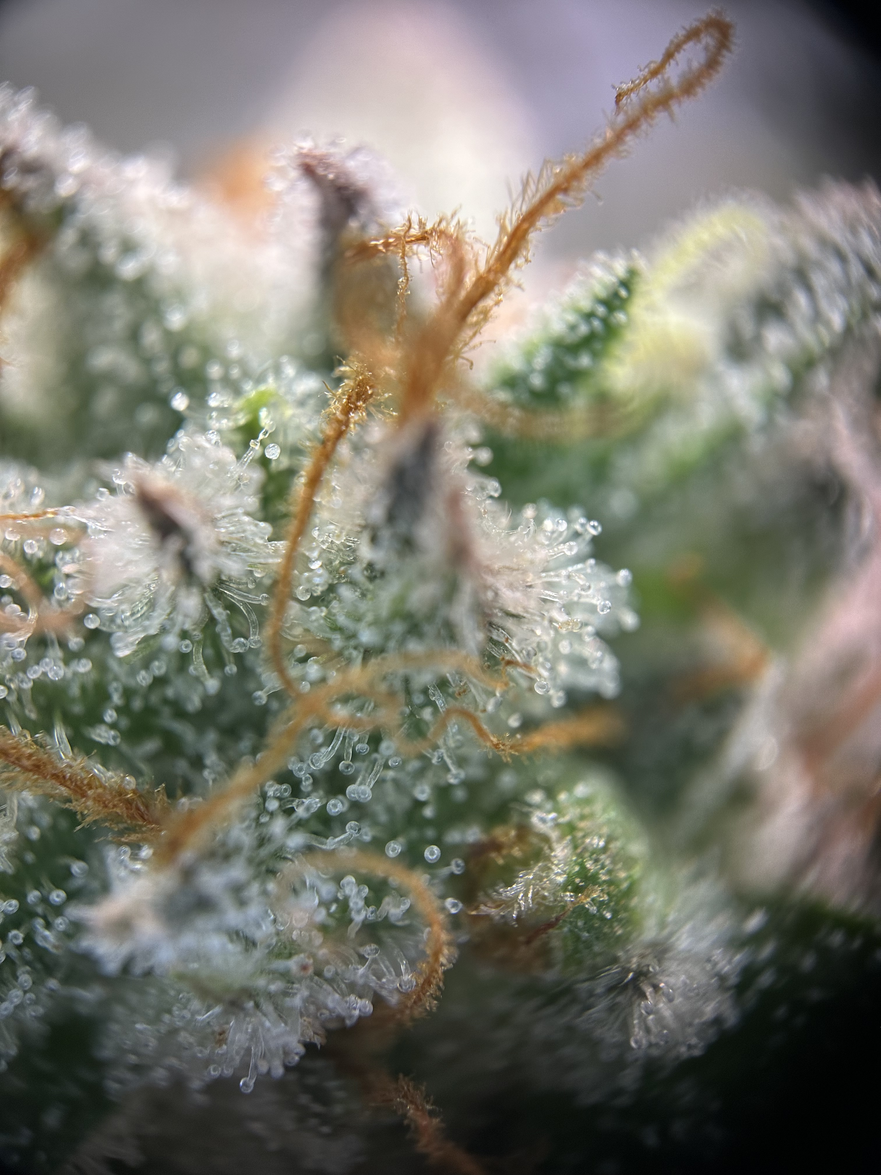 Die CBD-Blüte von gestern war ein schlechtes Beispiel und ich war zu weit weg. Wenn man richtig nah ran geht und frische, dicke Trichomköpfchen fotografiert, geht da schon noch was.