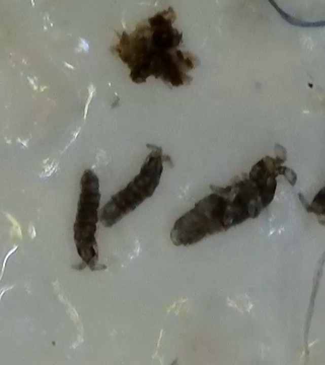 Hier noch ein paar kleine harmlose Krabbeltierchen. Zur Einordnung: Mit bloßem Auge sehe ich nichtmal dass das Tiere sind. Da sehen sie aus wie Staubkörner. Mit dem Mikroskop sieht man sogar die Augen ![]()