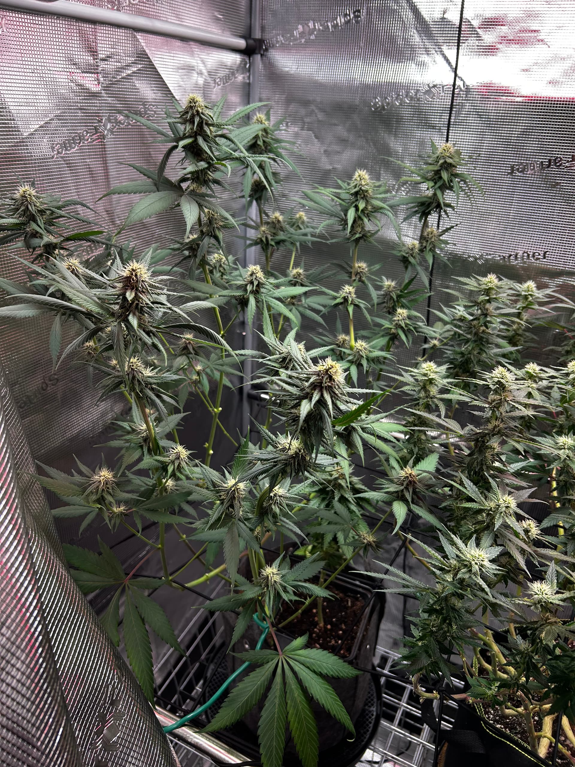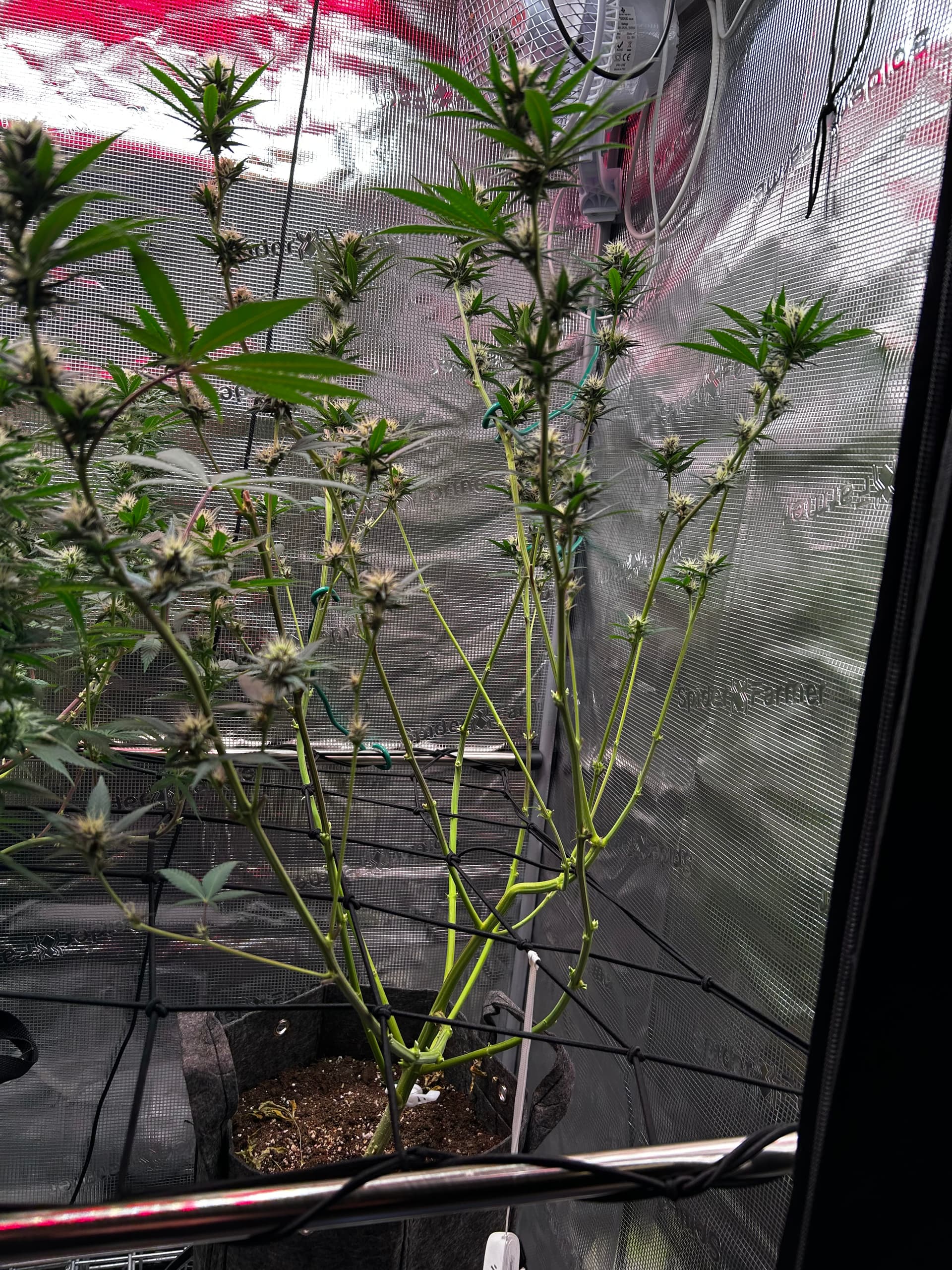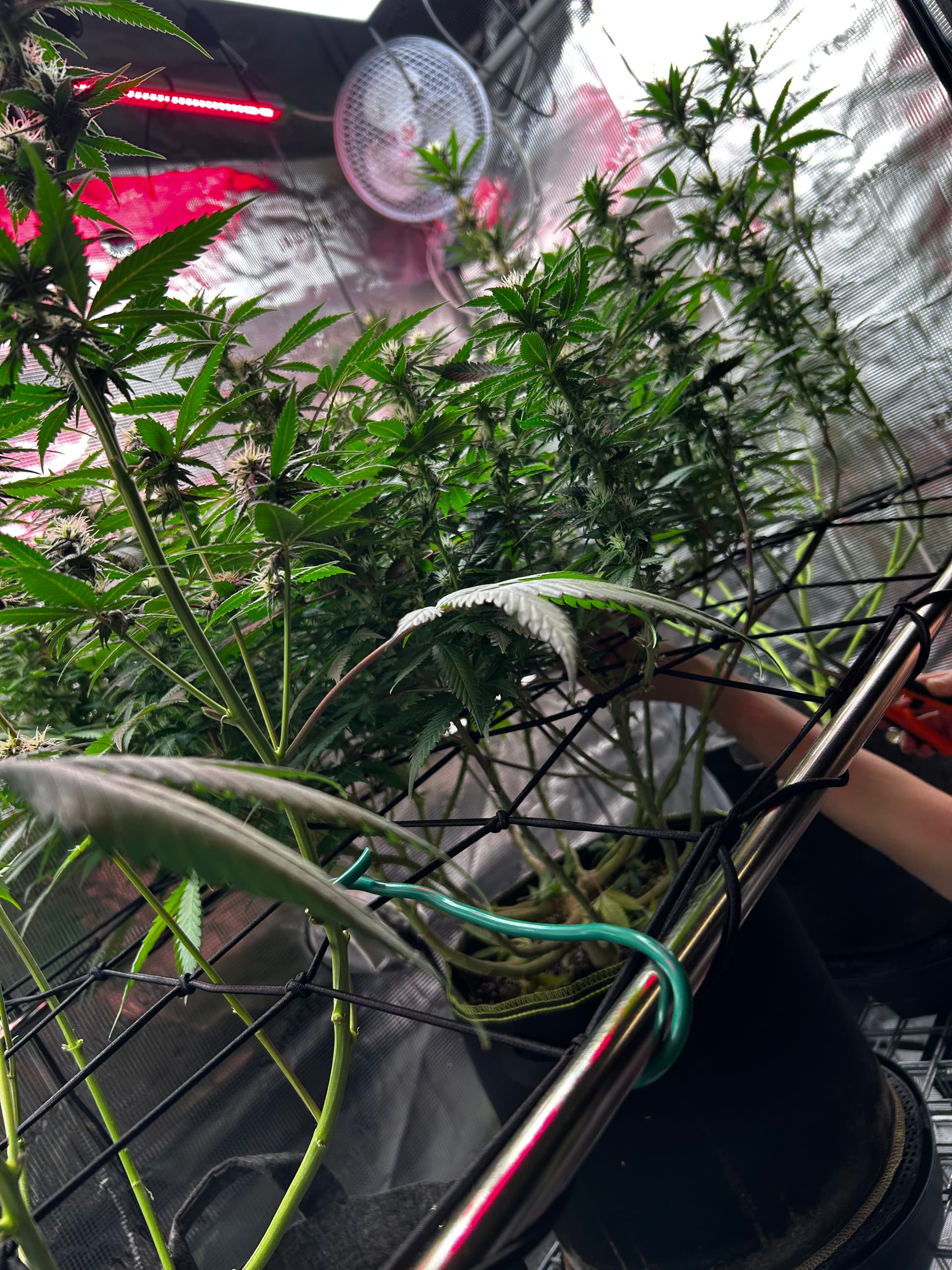 Gestern (Sonntag) gab’s einmal die volle Packung Lollipopping und Entlaubung. Jetzt kommt wieder Licht und Luft an die Budsites, das Zelt wirkt viel cleaner und die Plants können wieder richtig atmen. Genau das richtige Timing, um bald mit dem Licht nochmal hochzugehen, sobald sie sich ein bisschen erholt haben.