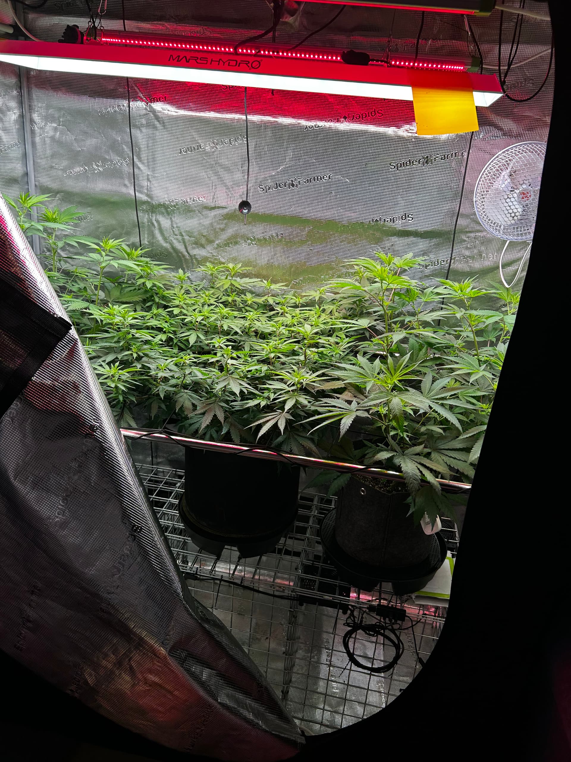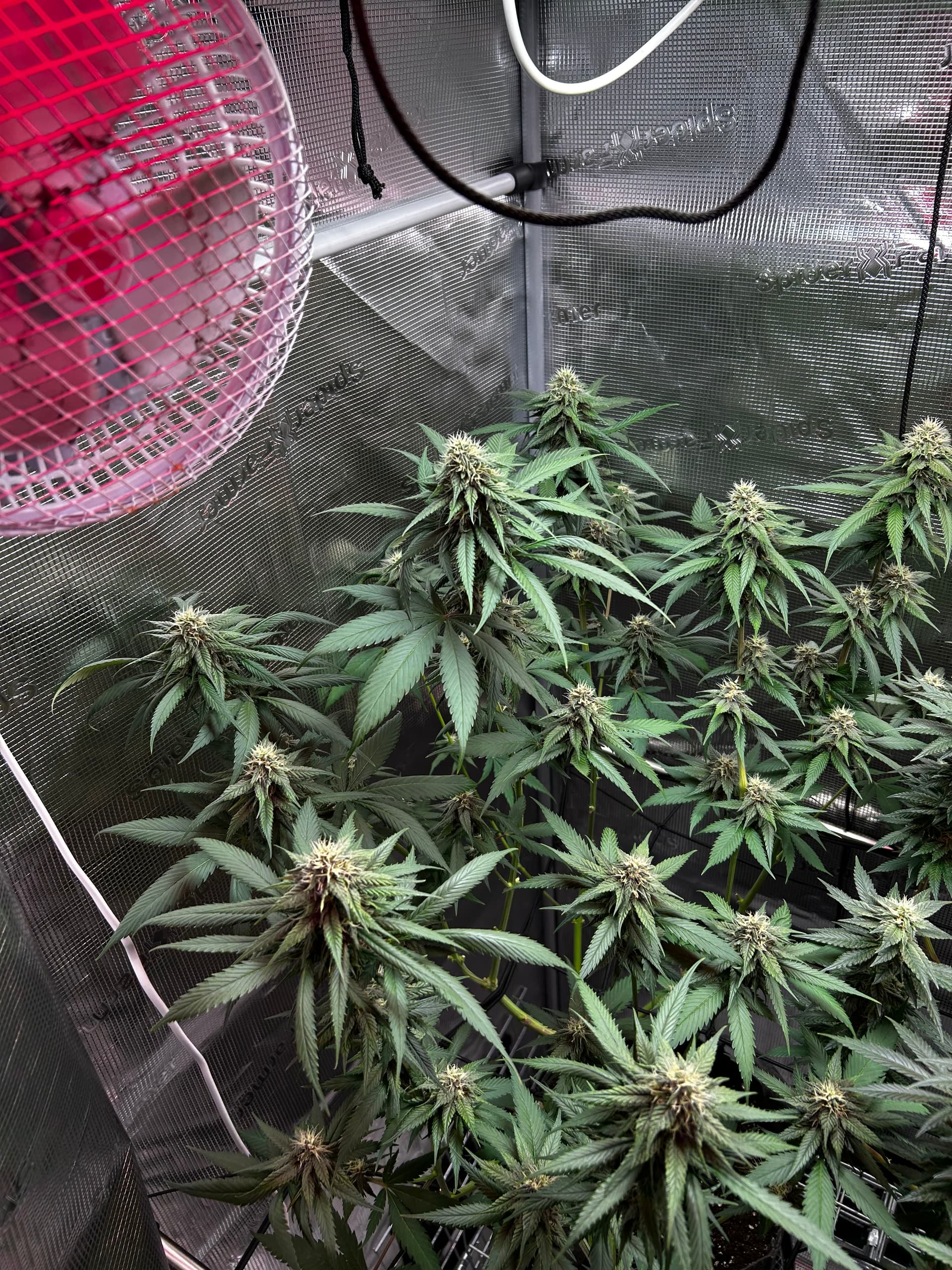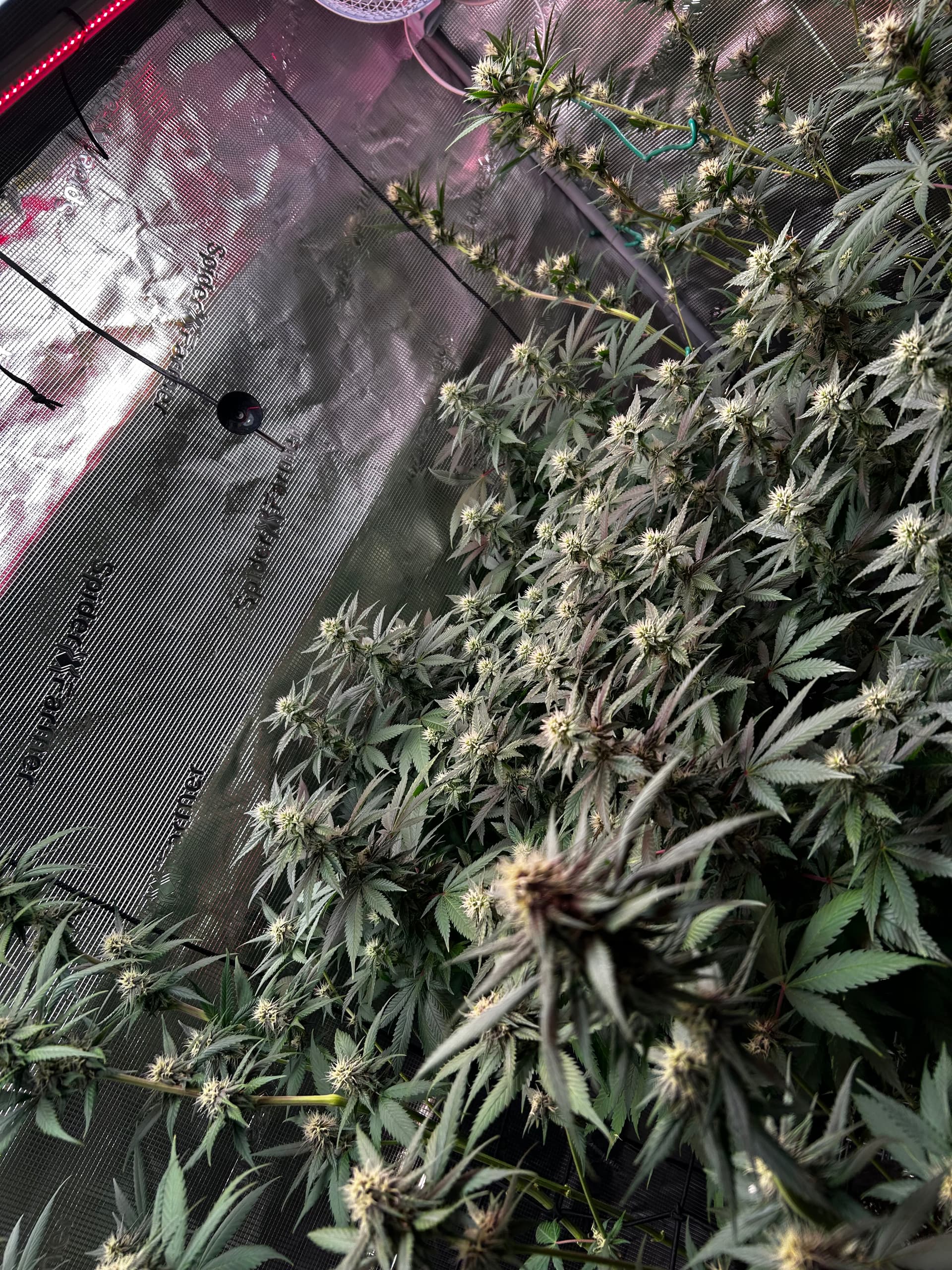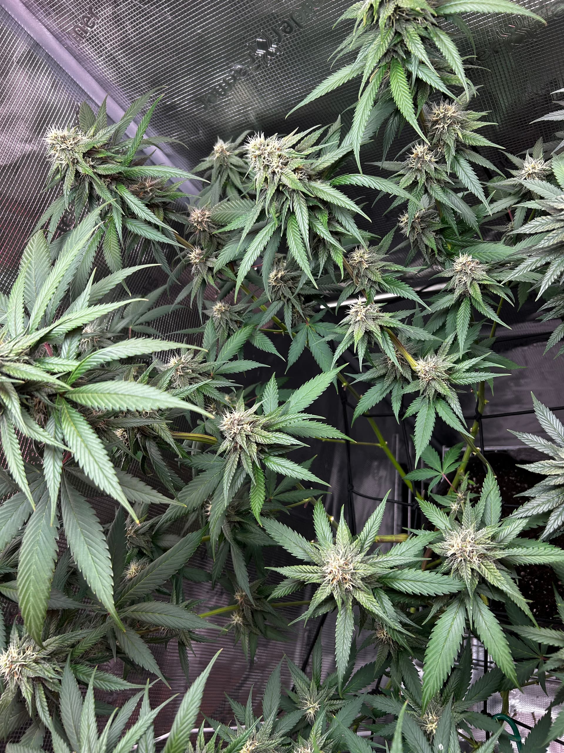 Gestern (Sonntag) gab’s einmal die volle Packung Lollipopping und Entlaubung. Jetzt kommt wieder Licht und Luft an die Budsites, das Zelt wirkt viel cleaner und die Plants können wieder richtig atmen. Genau das richtige Timing, um bald mit dem Licht nochmal hochzugehen, sobald sie sich ein bisschen erholt haben.