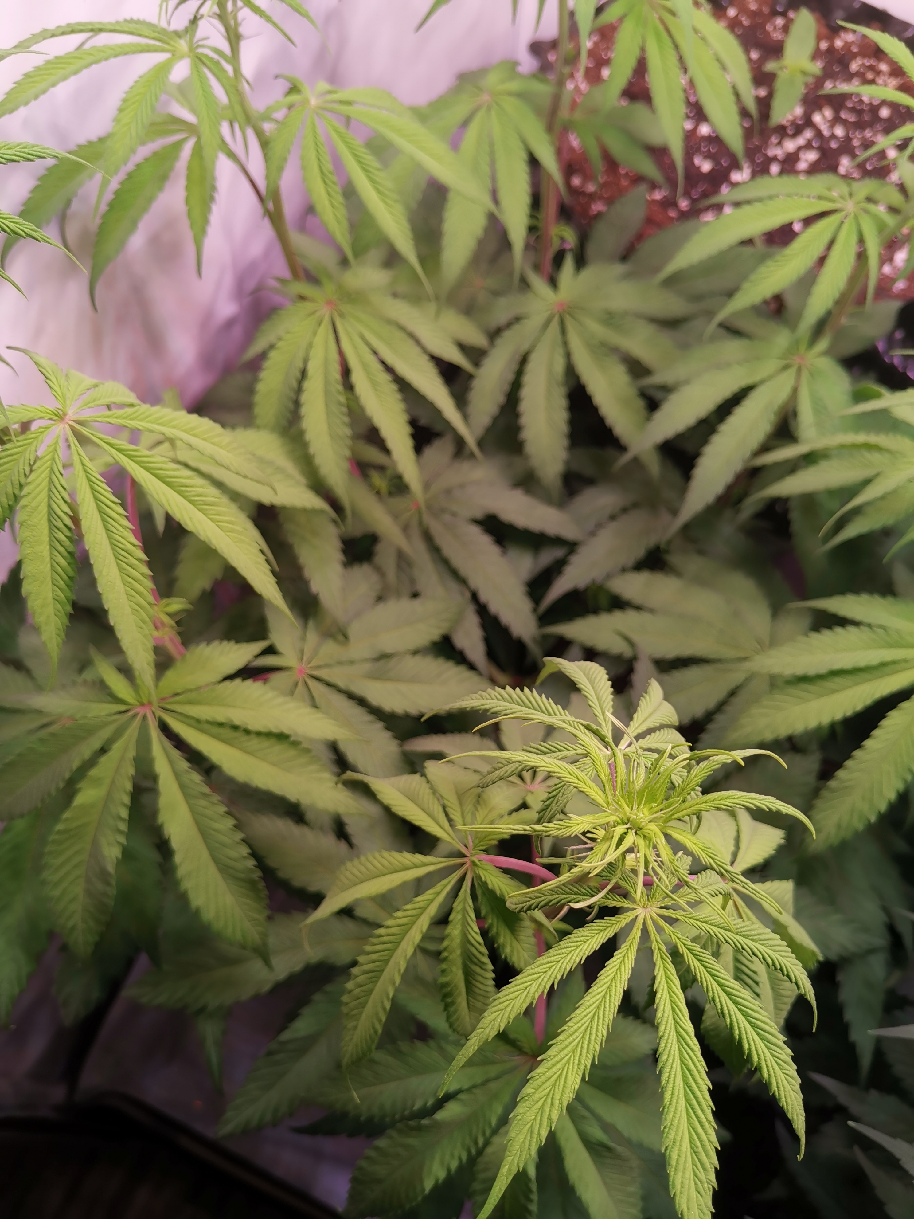 sehr schön… ich erwarte eine deutlichen anstieg an vitalität sichtbar an der blatthaltung… bis das grün wieder kräftiger wird… und das gelbe weicht, oben rum… kann es bis zu einer woche dauern… falls dem nicht so ist kann es sein dass du deinen grow mineralisch zu ende bringen musst… ich vermute aber dass sich das problem von alleine löst… skunk kann was.