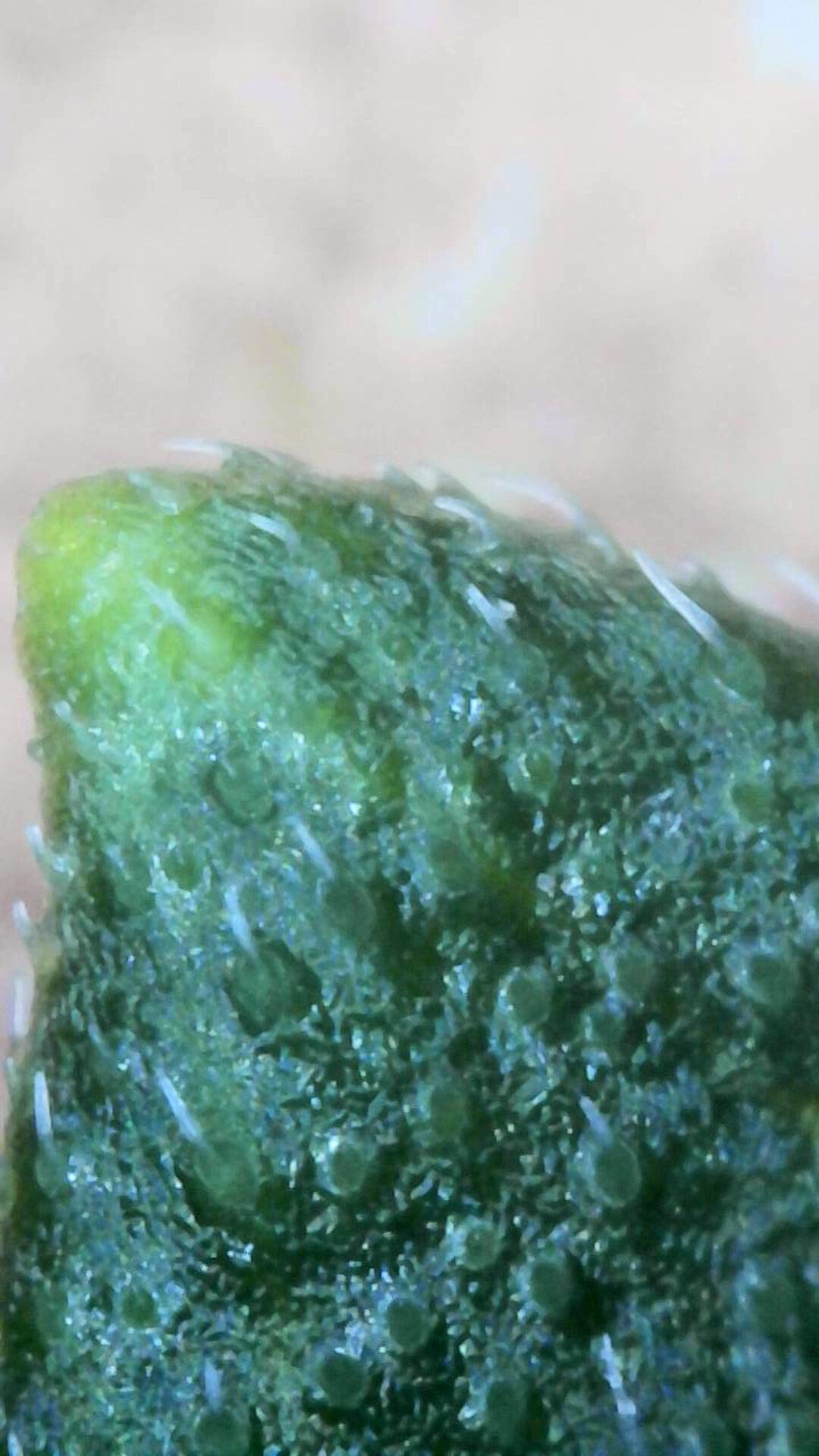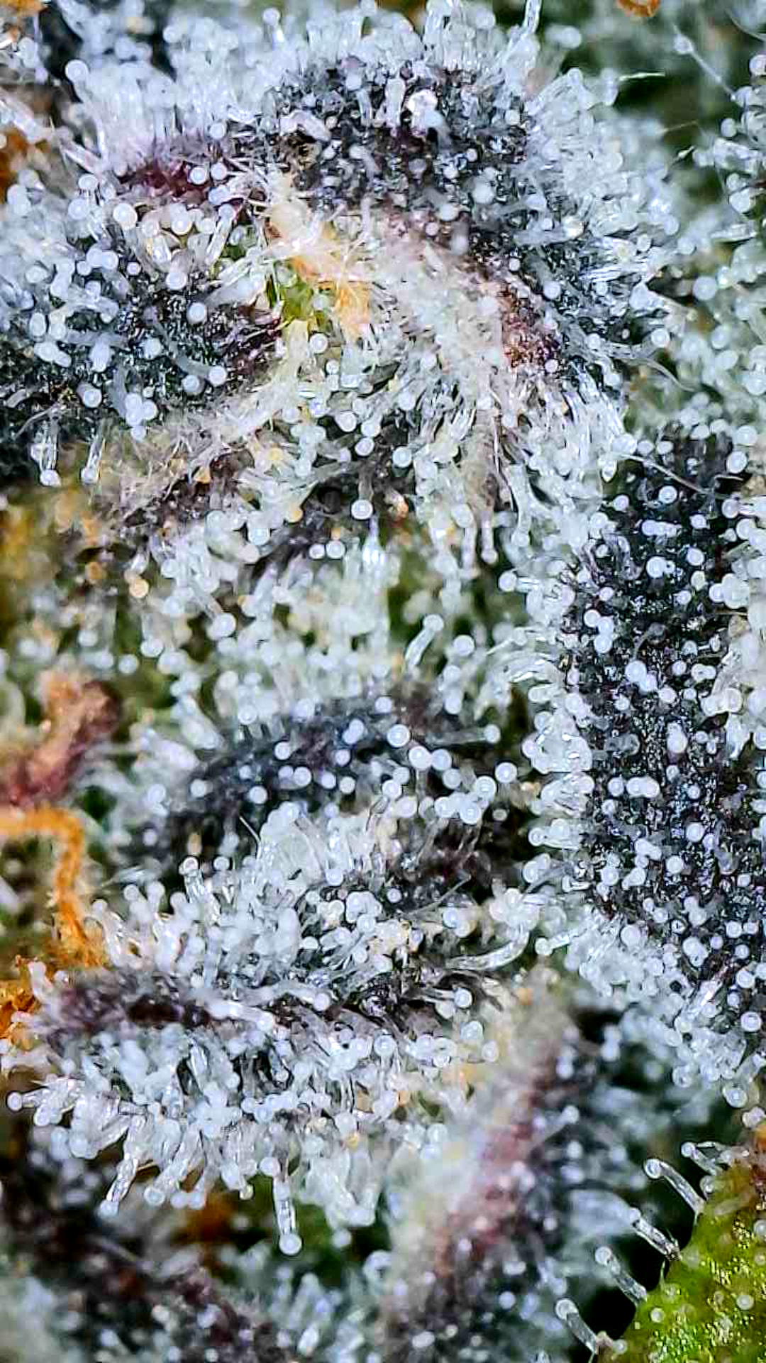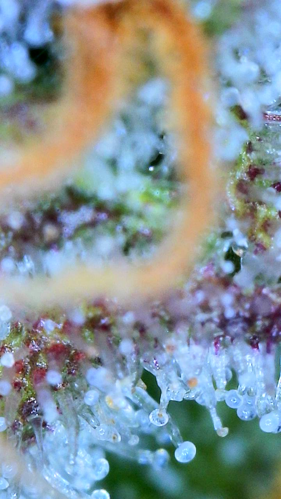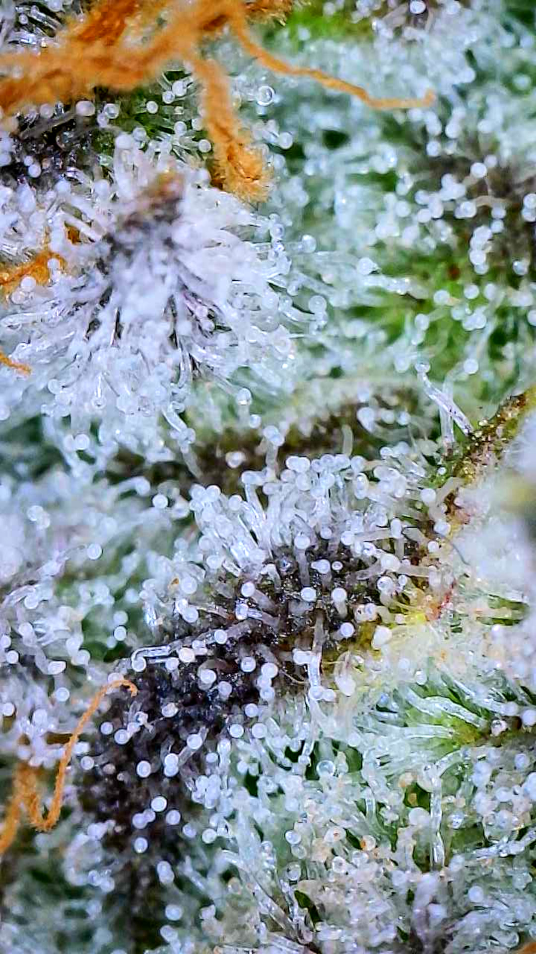 Sowohl alte wie neue Blätter waren betroffen! Wir hatten wohl zu wenig Nährstoffe gegeben die NL der Tage zuvor hatte 1.810 EC, 1.711 EC, der Drain war aber 1.202 EC, dann plötzlich 0.900 EC (also -0.608 und -0.811 EC zum Schluß). Das war wohl zuviel Licht und zu wenig Nährstoffe. Gezeigt hatte es sich zum Glück nur an der Epic Buzz mit der schnellsten Blüteentwicklung und den meisten Trichomen.