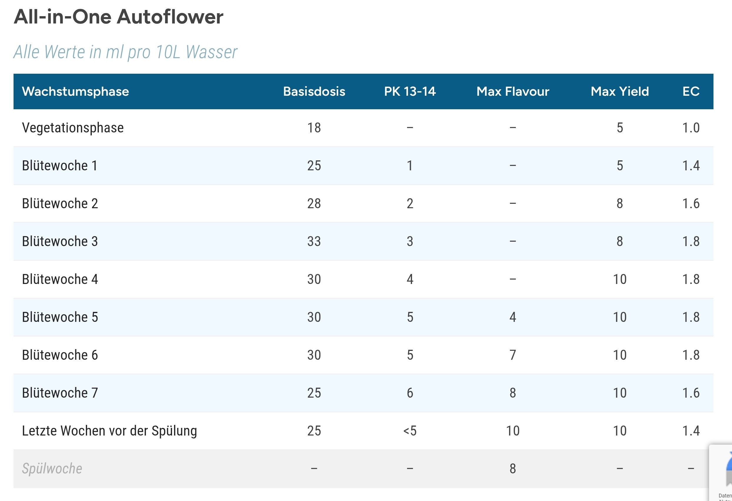 Ich habe mir gerade nochmal die Daten von Zamnesia angeschaut und bei mir einen Fehler entdeckt… und zwar steht in einer Beschreibung explizit Ca/Mg, allerdings ist es vom All in one Liquid und nicht vom Autoflower-Dünger. Für die Autos heißt es nur Basisdünger, was mir sagt ich sollte das Ca/Mg vllt doch lieber verwenden.