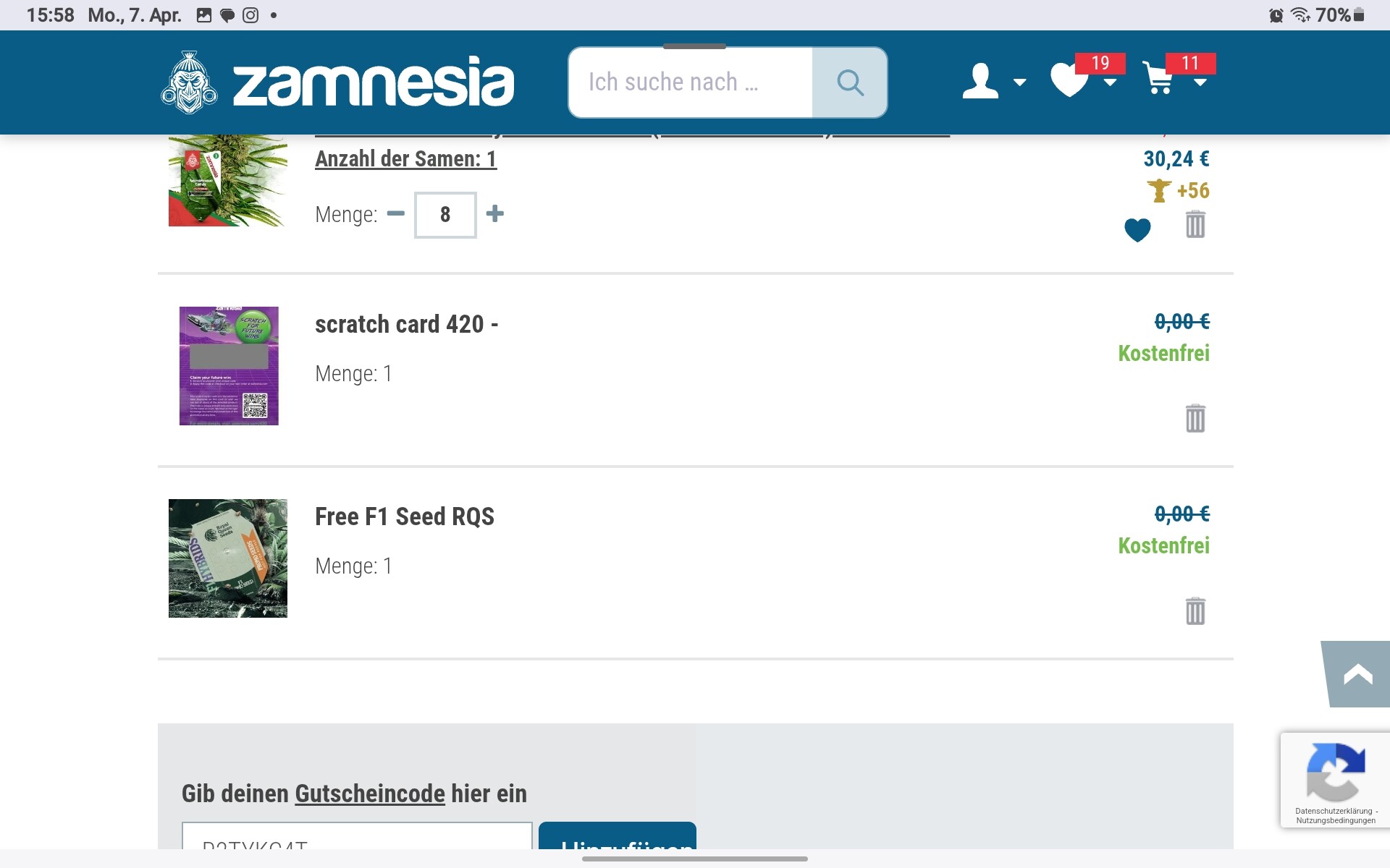 iert, aber der Code ist nur für Zamnesia Samen. Mit Zamnesia-Produkten funktioniert das! ![]()