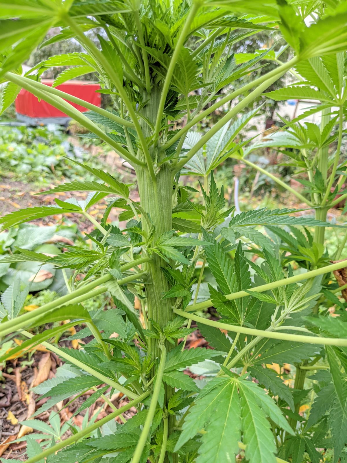 Ja die Größe kommt wohl auch daher, dass ich sie schon Mitte April vorgezogen habe und Mitte Mai dann ins Gewächshaus ziehen durfte. Und anfangs war ich mir nicht mal sicher ob sie männlich oder weiblich wird, da der Samen ein Bagseed war.