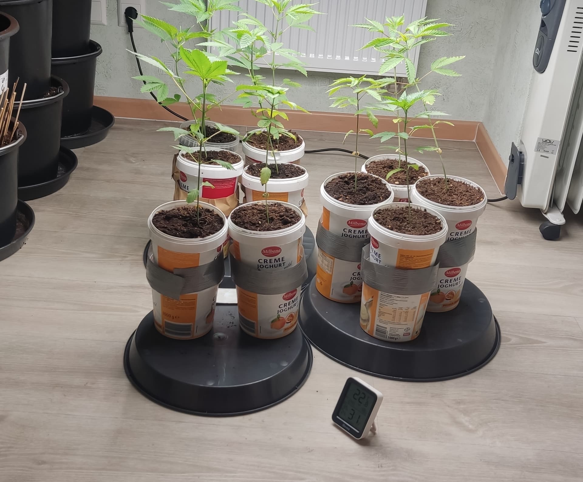 allerdings ist das erstmal nicht dein hauptproblem, sondern das umtopfen deiner stängel aus dieser abenteuerlichen doppeljoghurtbecherkonstruktion, ohne die wurzeln zu beschädigen.