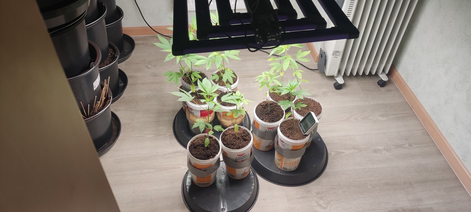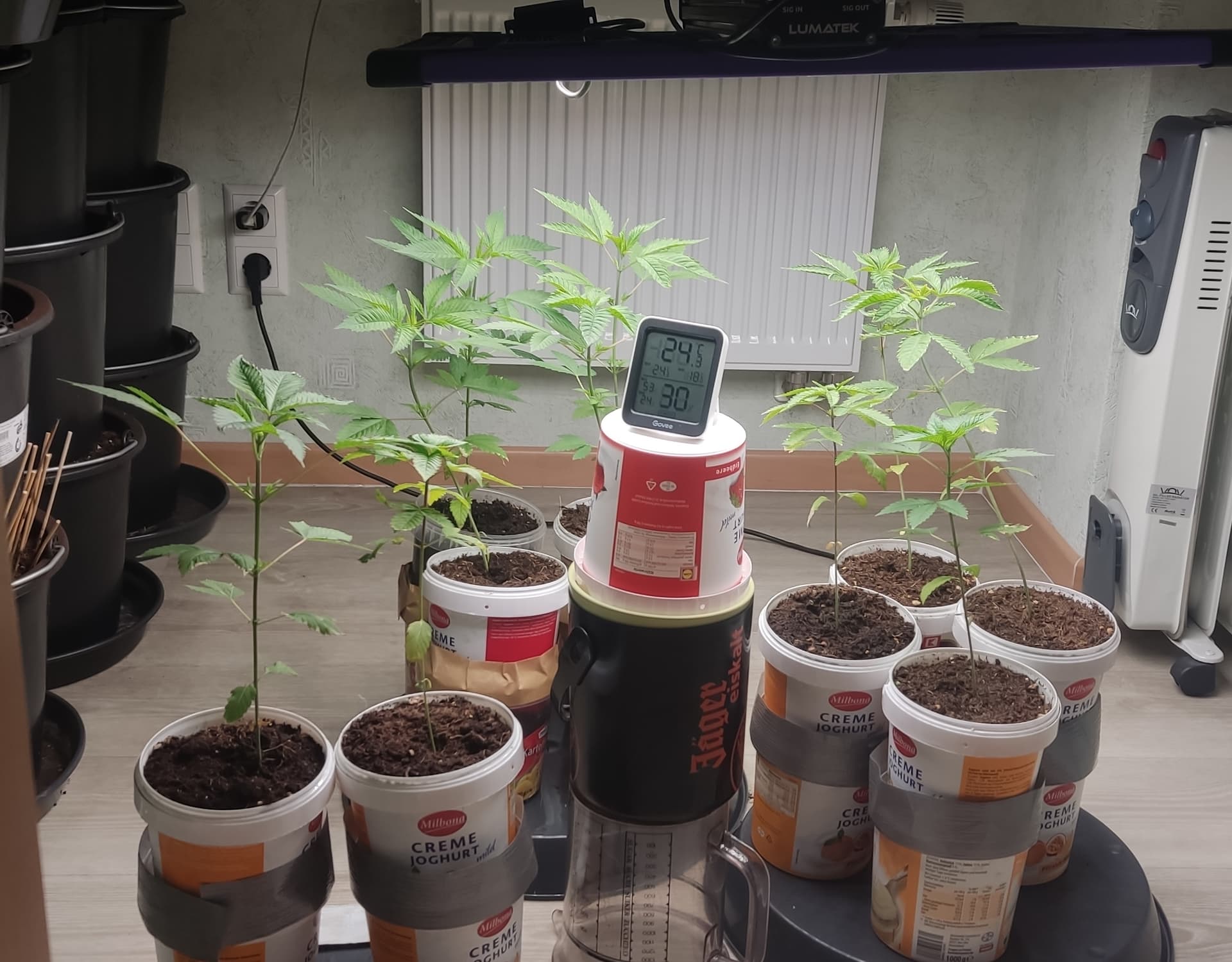 Unser Konzept sieht vor zunächst zwei Mütter zu selektieren, die dauerhaft ins Zelt ziehen werden, ab und an werfen sie dann einen Strauß Stecklinge, der ihnen ein Weilchen Gesellschaft leistet und dann außerhalb des Zeltes im Raum blüht. Selbst Samen herzustellen ist, denke ich, nicht annähernd so effizient.