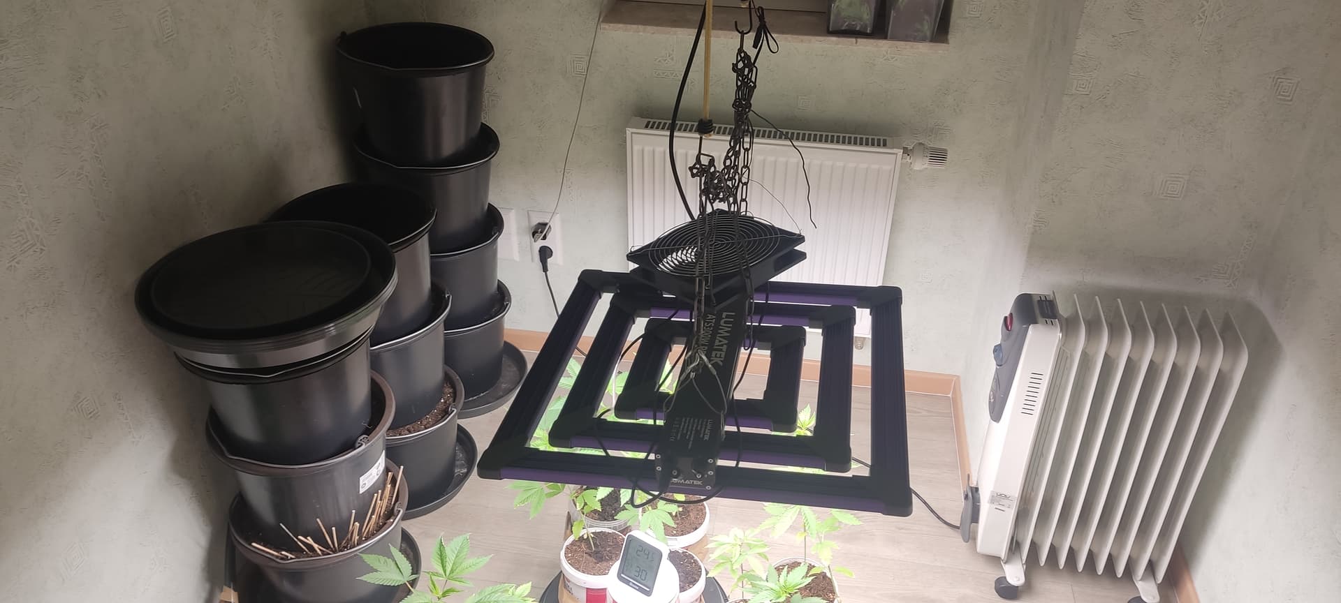 Wir haben vor zwei Jahren mal ein Proof of Concept gemacht. Das wir nun darin umsetzen wollen. Damals lief es mit einem kleinen und großen Zelt. Diesmal wird es wohl ein Zelt in besagtem Raum. Der Lüfter ist etwas größer, im Holzkasten isoliert mit Trafo. Das AKF bekommt einer alleine kaum an die Decke gehoben.
