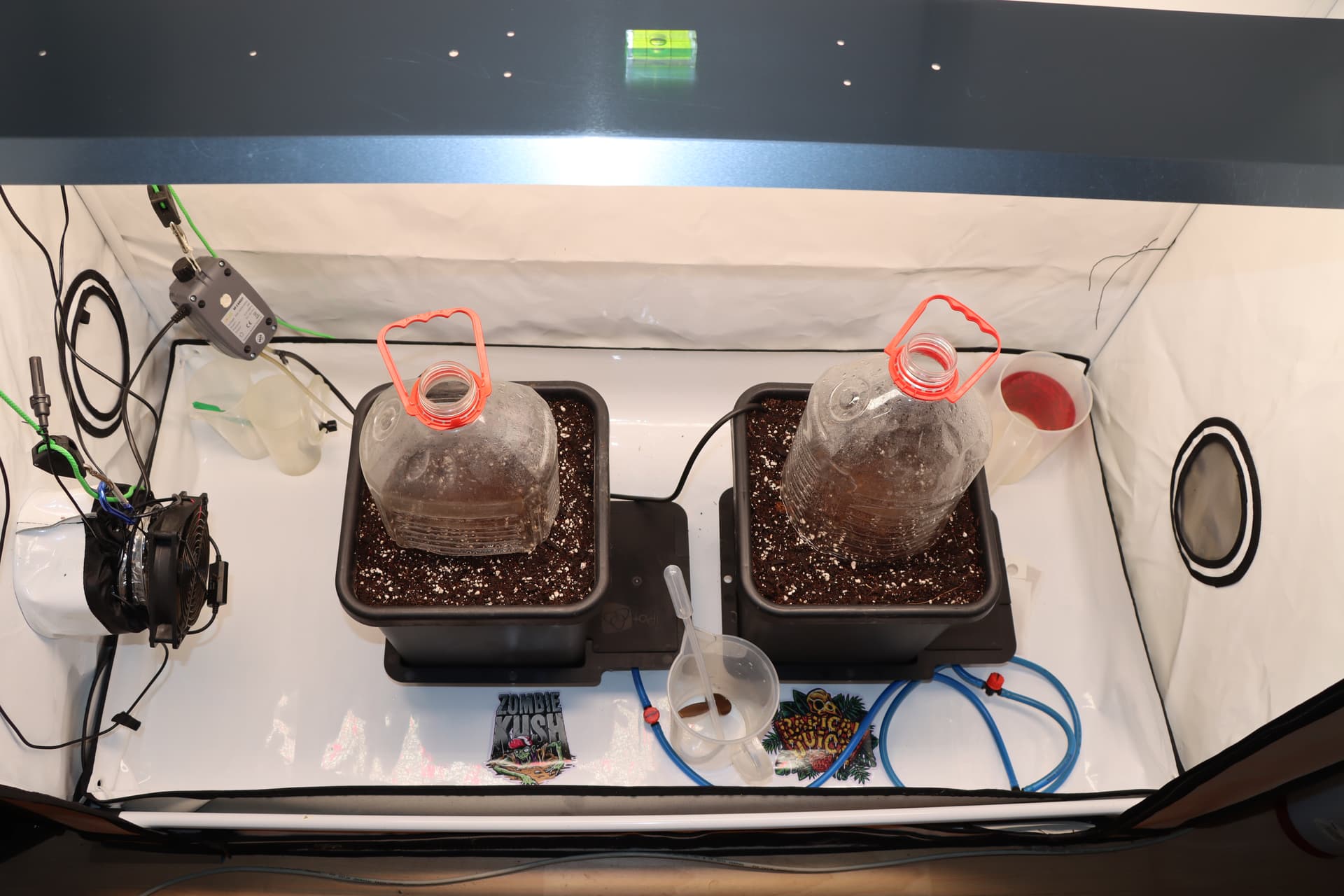 Nach einigen Blueberrylastigen Runden (2x Blue Cheese, Cream und Blueberry) gibt es diesmal eine (von mir sehnlichst erwartet) Kushlastige Runde, bestehend aus Zombie Kush Auto und Radical Juice Auto von Ripper Seeds.