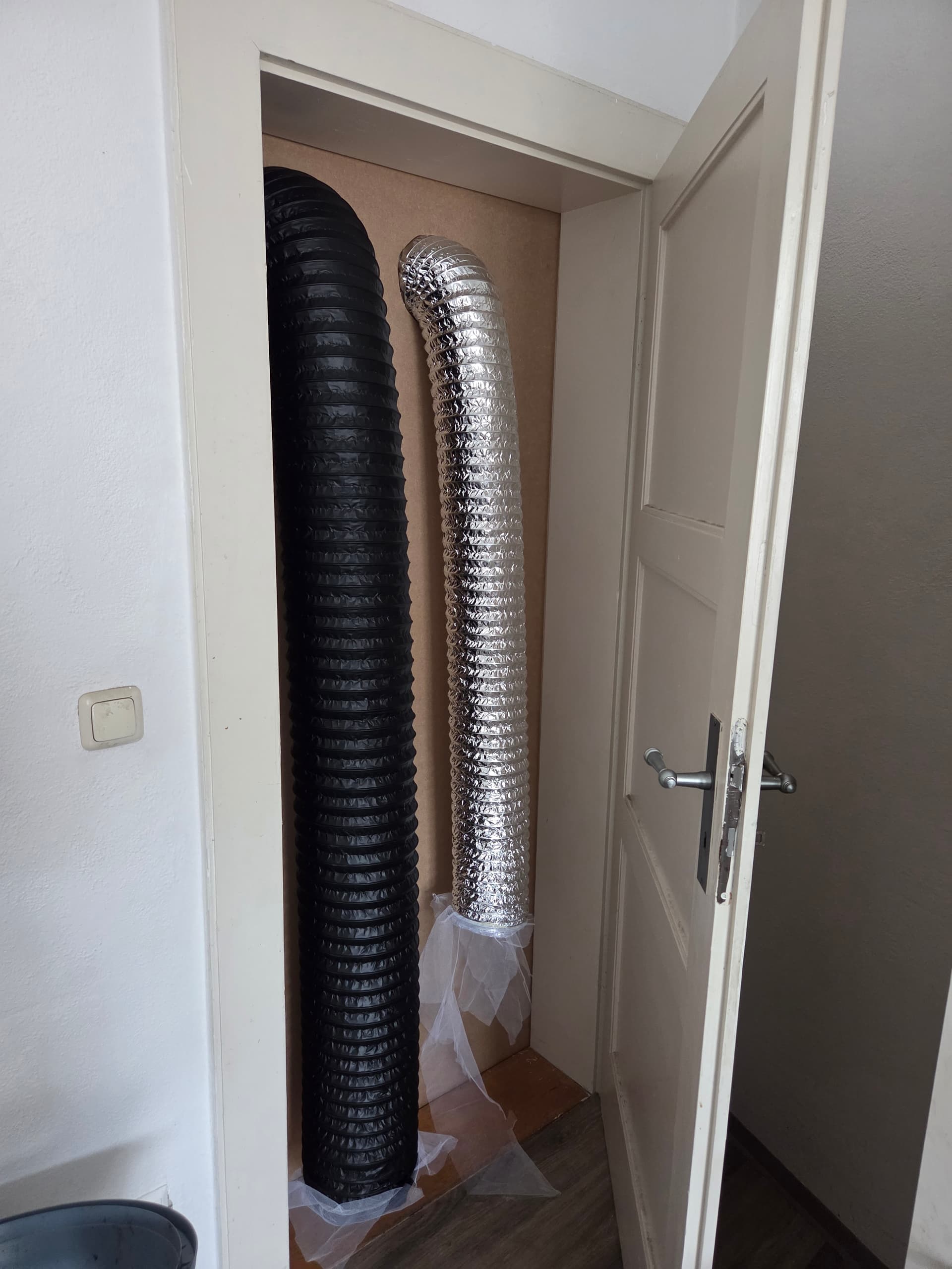 Für die Zuluft habe ich mir ausgerechnet dass ich ein Loch mit 125x125mm quadratisch oder 141mm Durchmesser rund brauche (doppelte Fläche Abluft).