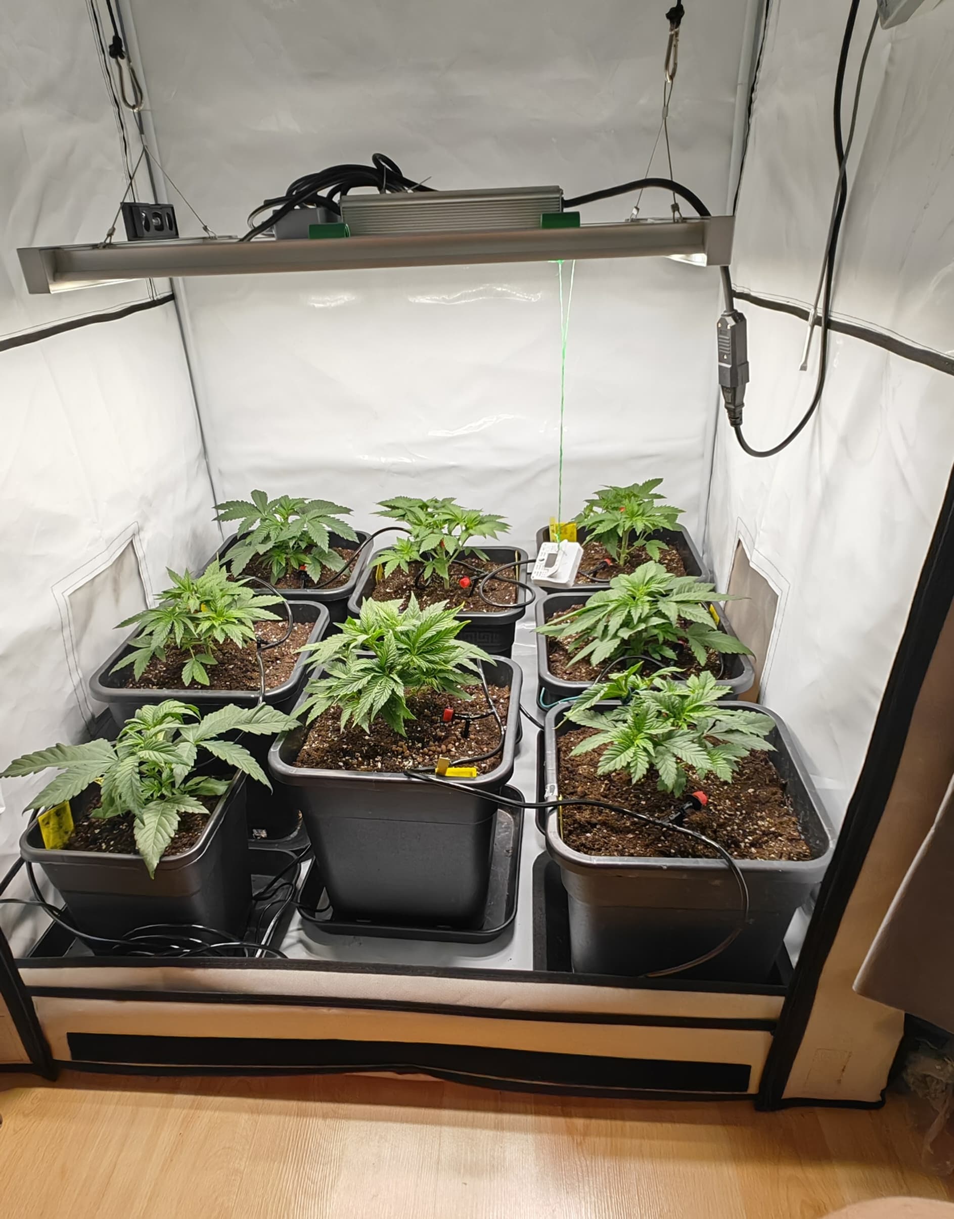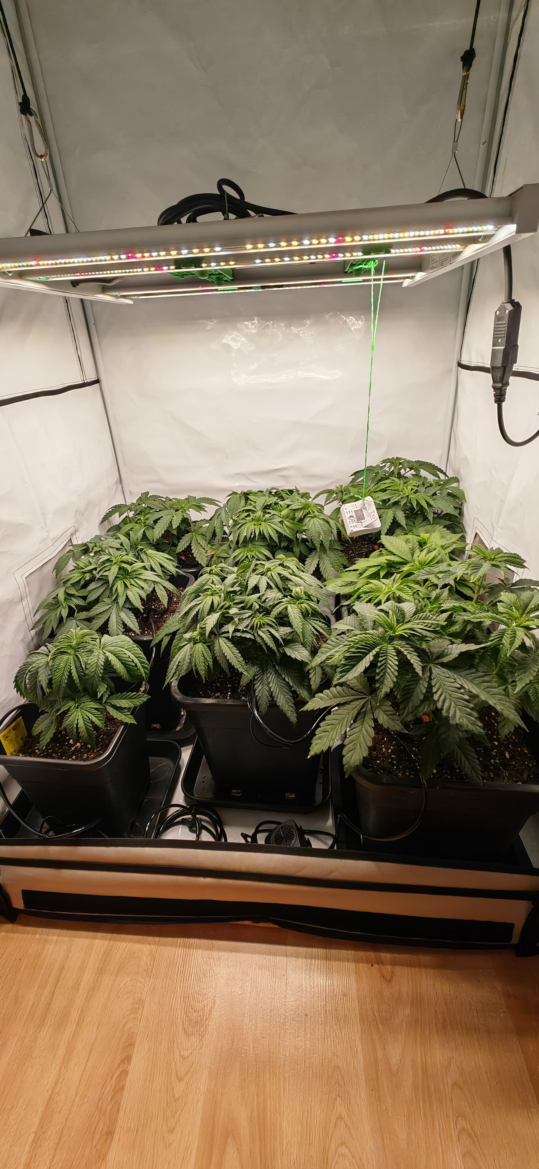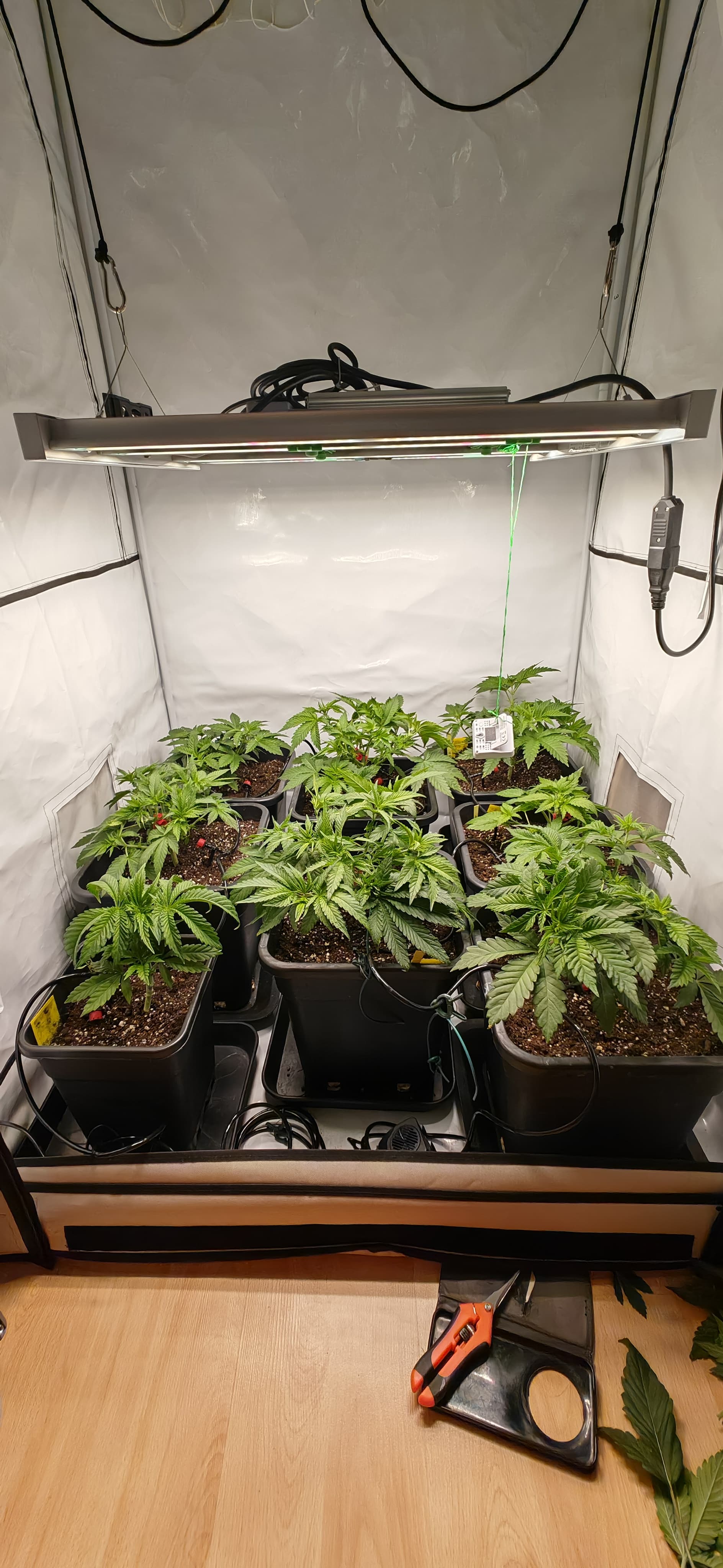 -geplant ist es so in 1-2 Wochen zu entlauben Zweige runter zu binden bzw super cropp scrog netz anzubringen usw, danach 1-2 Wochen nochmal Vegi weiter machen, Zweige die nachwachsen unter das Netz stecken, noch etwas entlauben um im Anschluss auf 12/12 umzustellen.