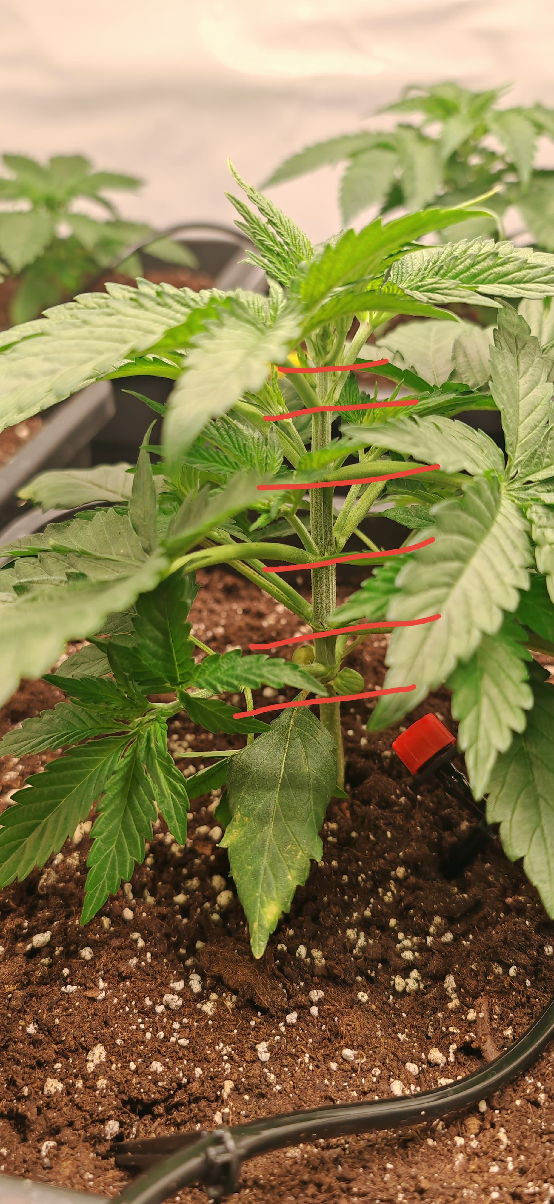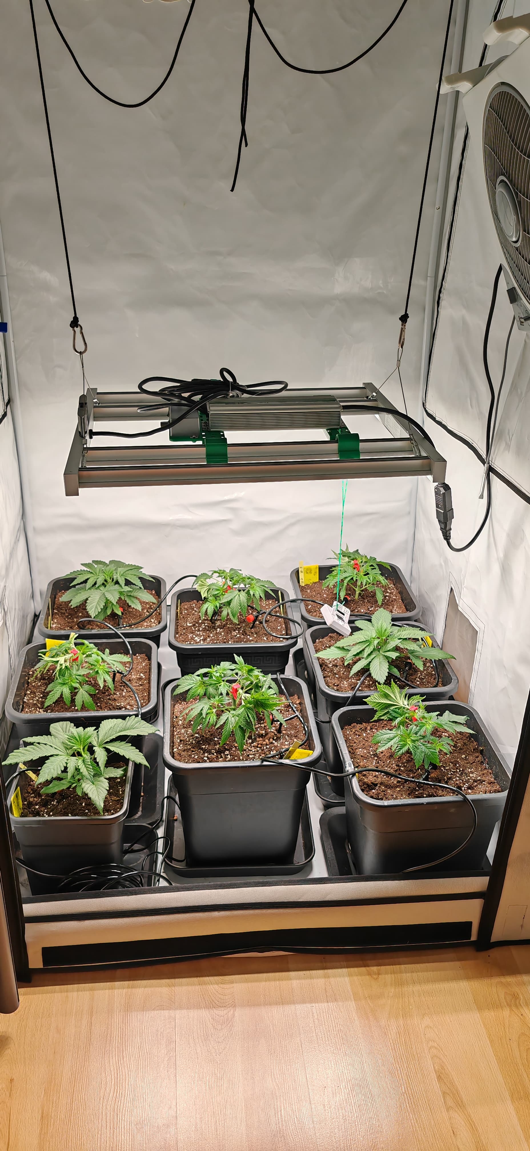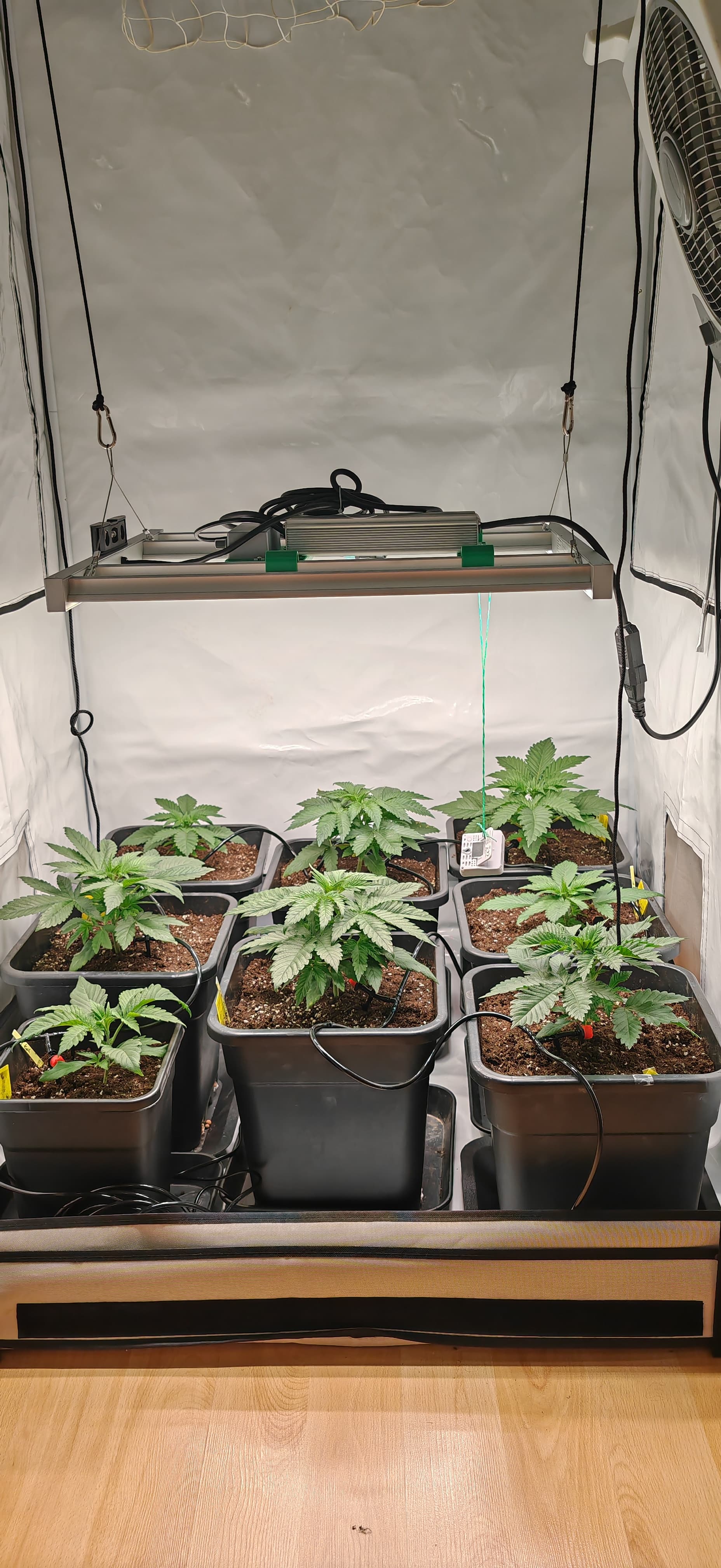 -geplant ist es so in 1-2 Wochen zu entlauben Zweige runter zu binden bzw super cropp scrog netz anzubringen usw, danach 1-2 Wochen nochmal Vegi weiter machen, Zweige die nachwachsen unter das Netz stecken, noch etwas entlauben um im Anschluss auf 12/12 umzustellen.