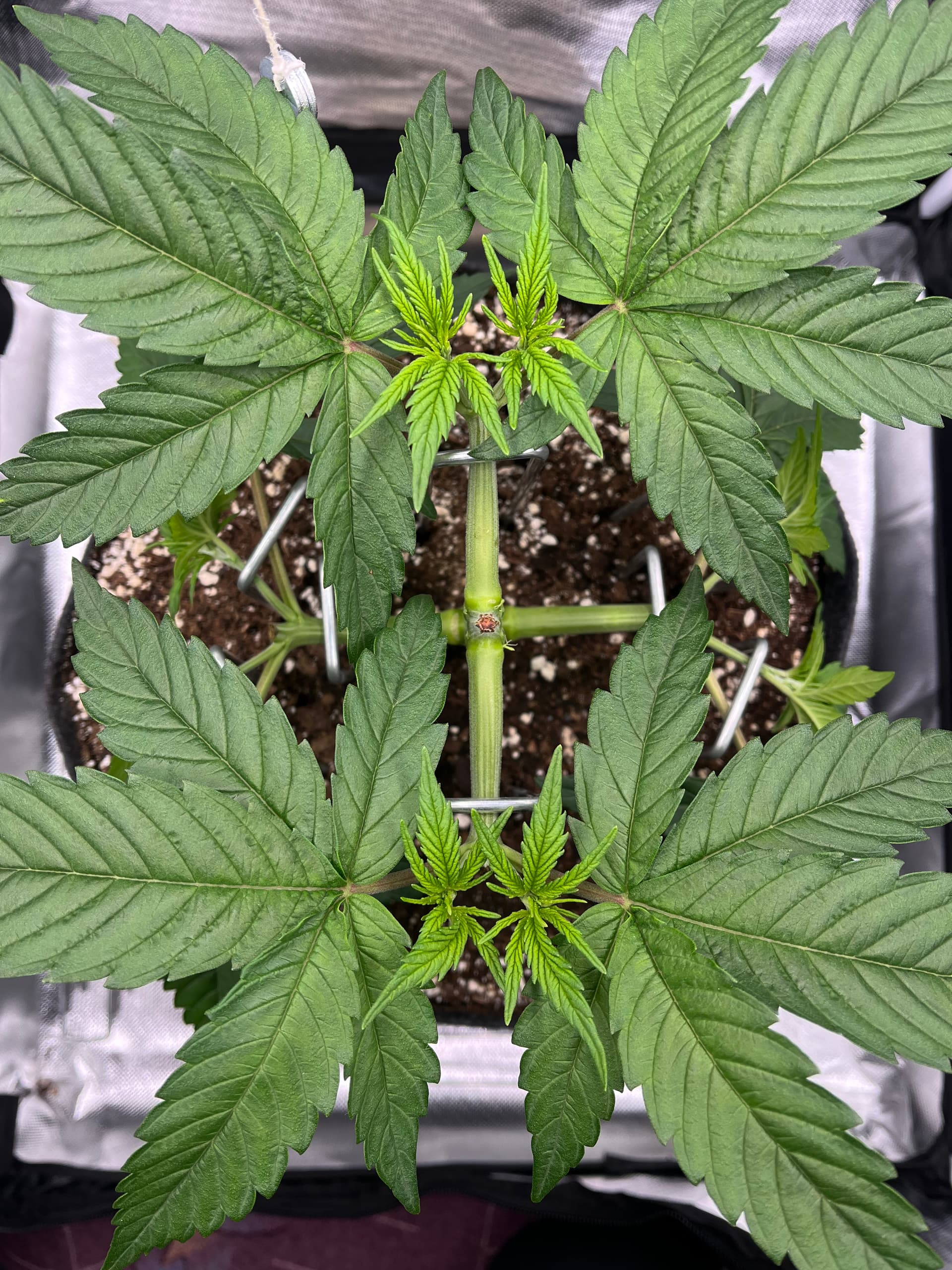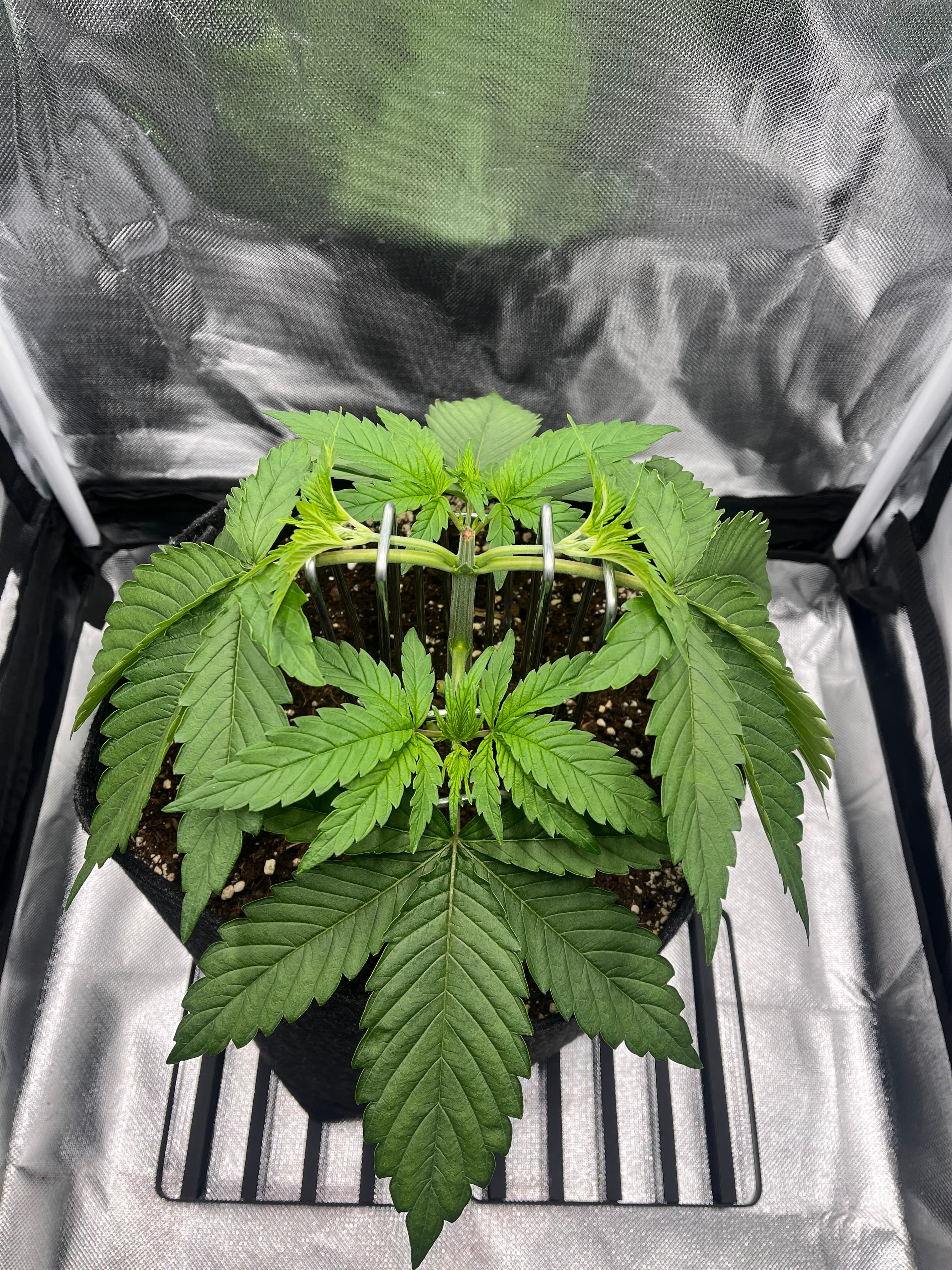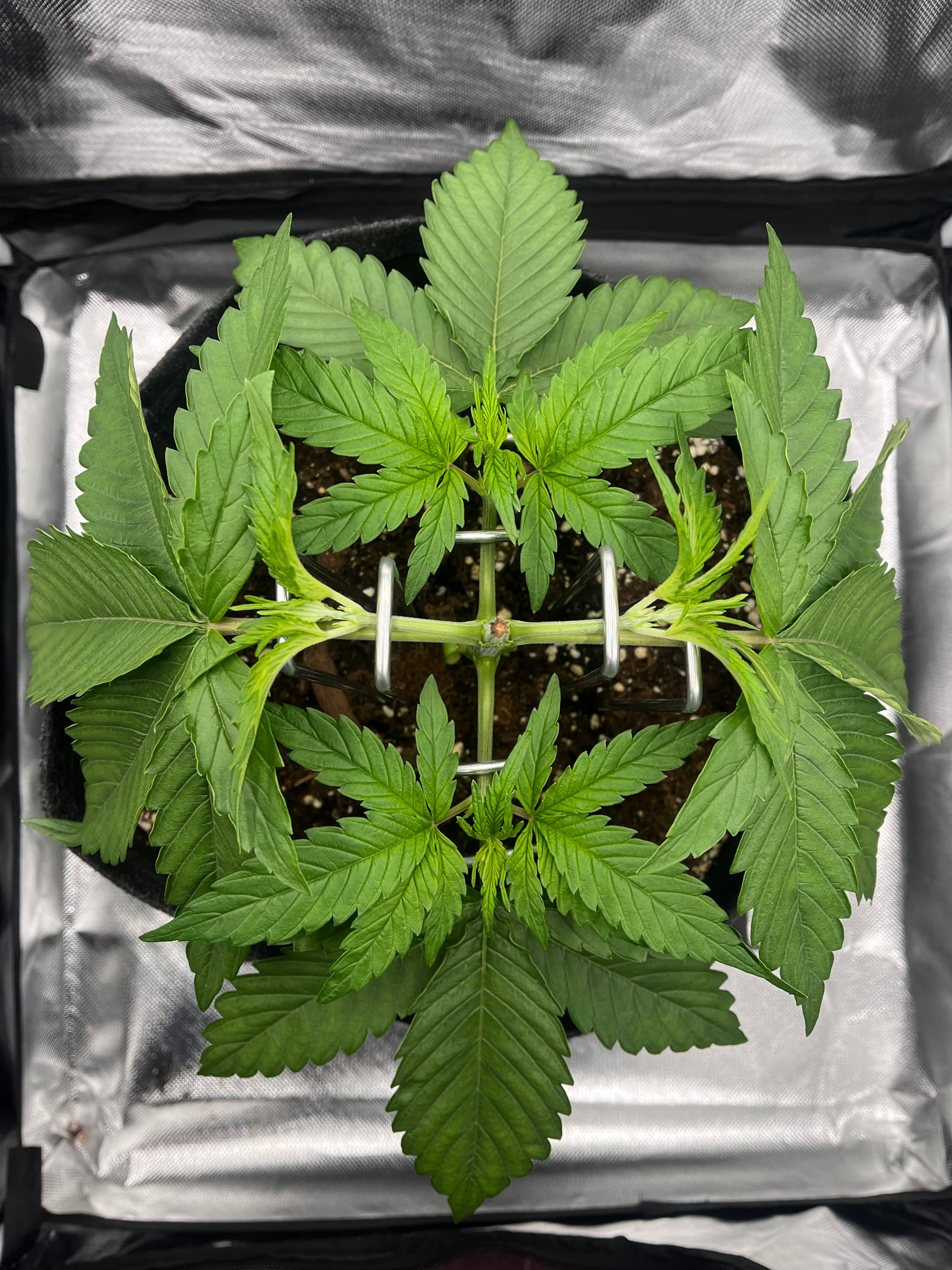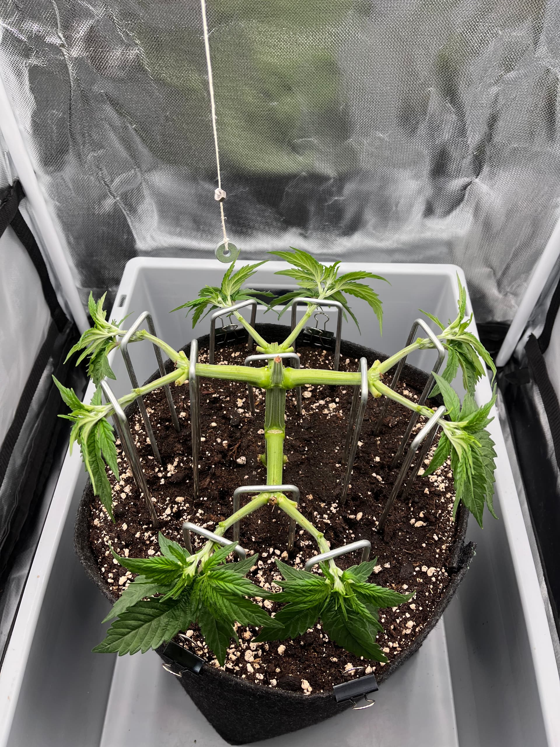 vor zwei Tagen wurde das zweite Mal getoppt und sie wĂ€chst schon wieder weiter. Heute habe ich mit dem Training der unteren 4 neuen Triebe begonnen. Ich habe das GefĂŒhl dass ich vielleicht noch einmal Umtopfen muss wenn die Triebe zu weit nach auĂen wachsen.. aber 15L bzw. jetzt ja 18L Medium in Stoff sollte fĂŒr ein 60x60 Zelt genug sein oder? Habe Angst dass sie sonst zu groĂ wĂ€chst. Zelthöhe ist 180cm. Ich bin jetzt bei 8 Trieben, möchte aber mindestens auf die 16 gehen, vielleicht auch 32 um das Zelt komplett auszufĂŒllen.