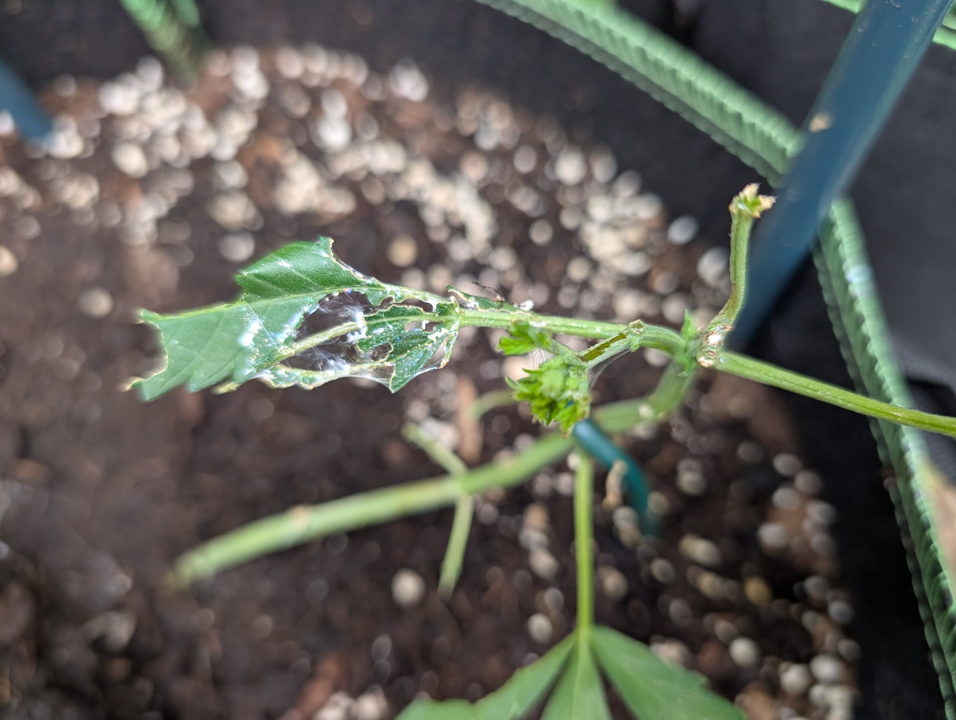 Die Blueberry Skittlez wurde auf natürliche Weise getoppt (angefressen). Mal sehen ob sie sich davon erholt, oder ob ich einfach selbst den obersten Trieb abschneide.