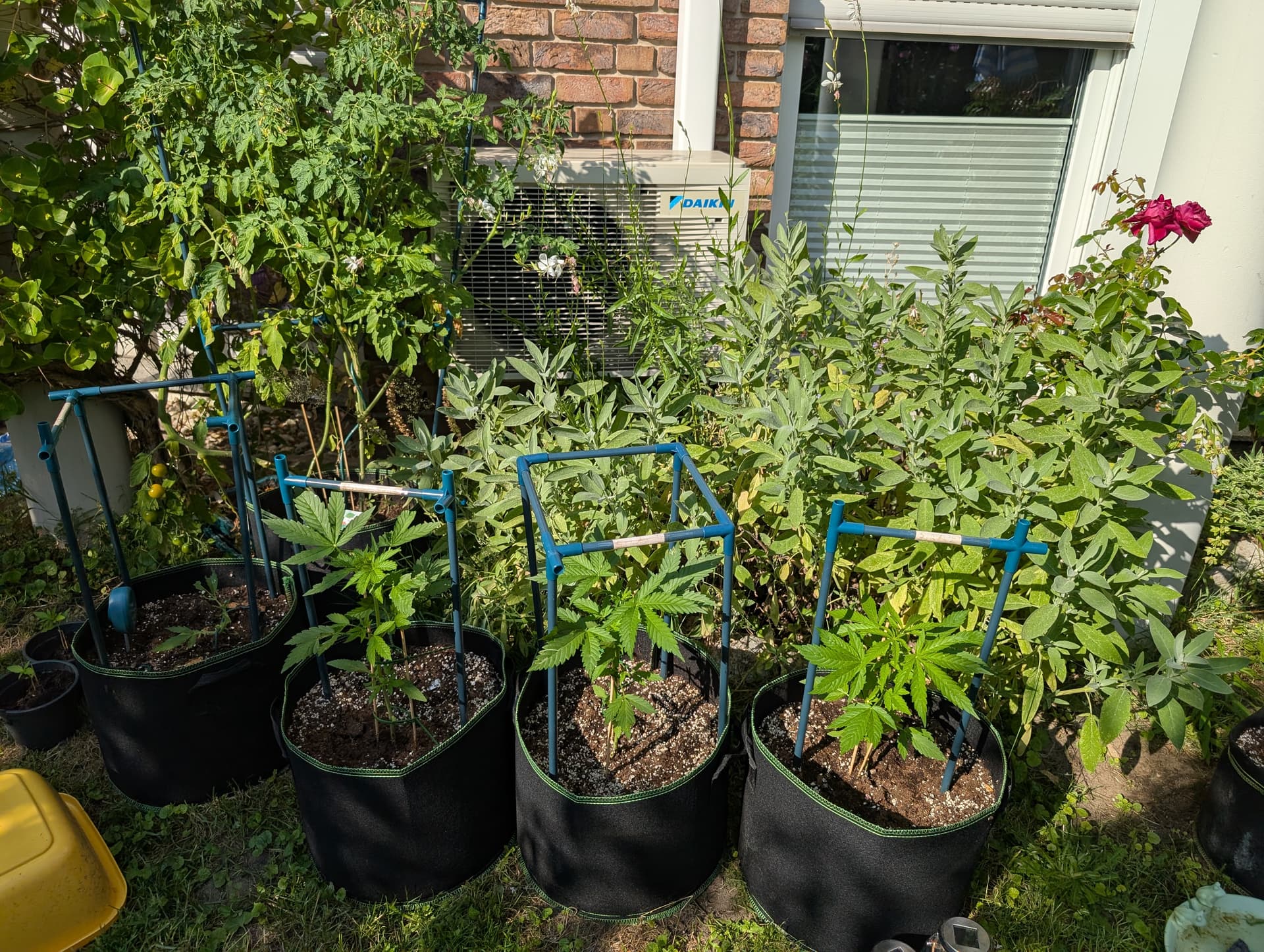 Die Kleinen hingegen genießen das warme Wetter in vollen Zügen und wachsen. Sie haben gestern das erste mal ein wenig Dünger bekommen. Ich nutze weiterhin Compo Grow und Blüte.
